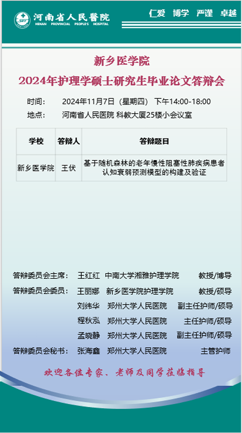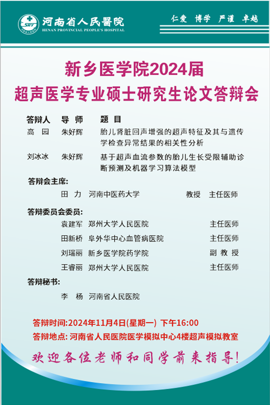 2024下半年华亿在线手机版(大中国区)(河南省人民医院)护理学、影像医学与核医学硕士学位论文答辩海报