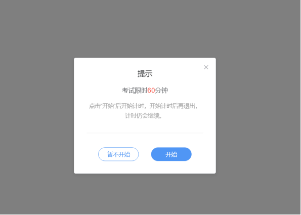 8.验证完成后,点击开始答题,进入正式考试,考试限时60分钟。