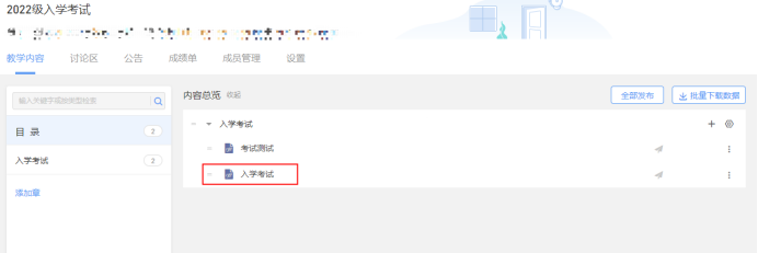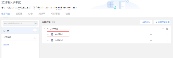 3.登录平台后,找到标有“2022级入学考试”班级字样,点击进入考试。