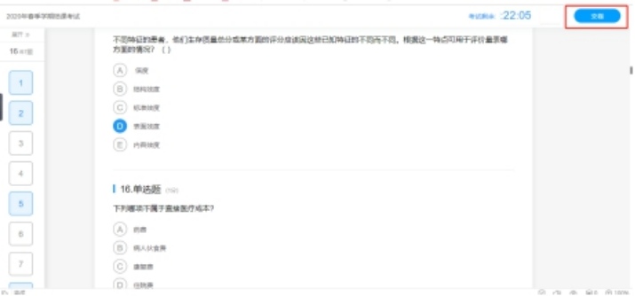 11.考试60分钟内全部作答完成,仔细检查无误后,点击右上角提交试卷,完成该课程考试;如在考试时间内未交卷,系统会自动强制提交。