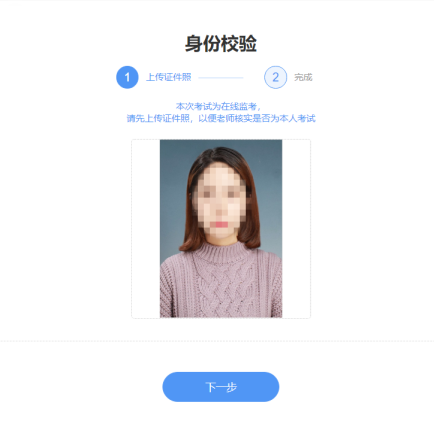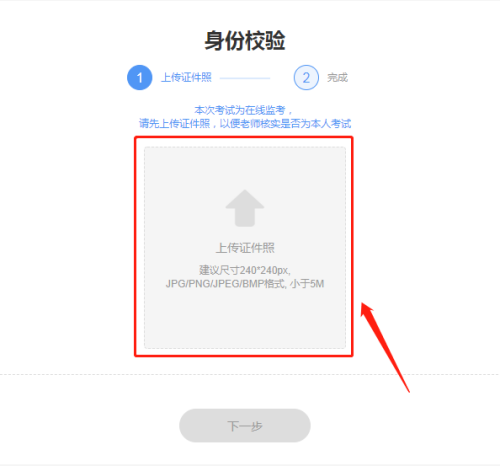 6.按照要求上传近期免冠照片,点击下一步,进行身份验证。
