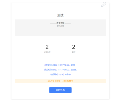 (点击“考试测试”,进入模拟测试界面,本功能仅用于测试使用)