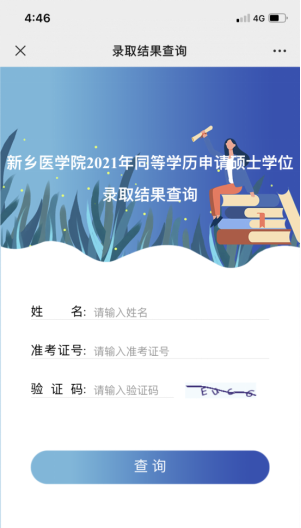 2.第二步,输入姓名、准考证号码,查询录取结果: