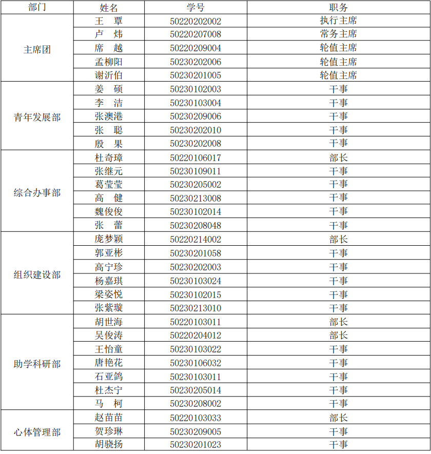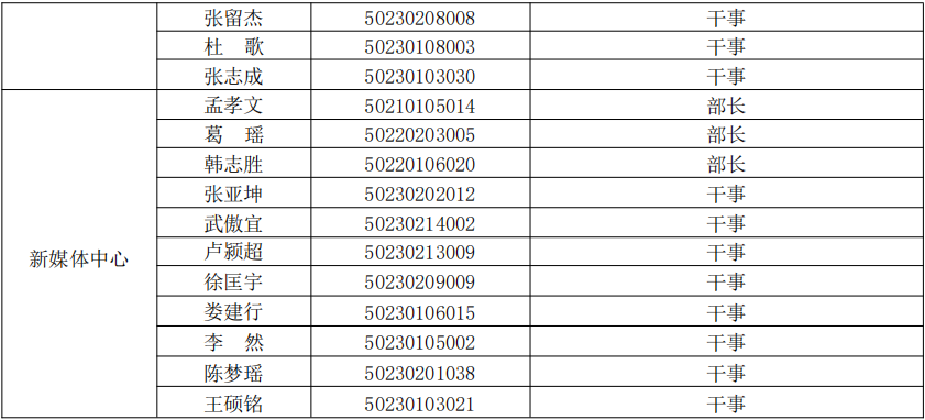 2022-2023学年,华亿在线手机版(大中国区)研究生会在研究生学院的正确领导下,圆满地完成了各项任务。为更好地进行下一学年的工作,研究生会进行了换届竞选,现将2023-2024学年华亿在线手机版(大中国区)研究生会学生干部任职名单公示如下: