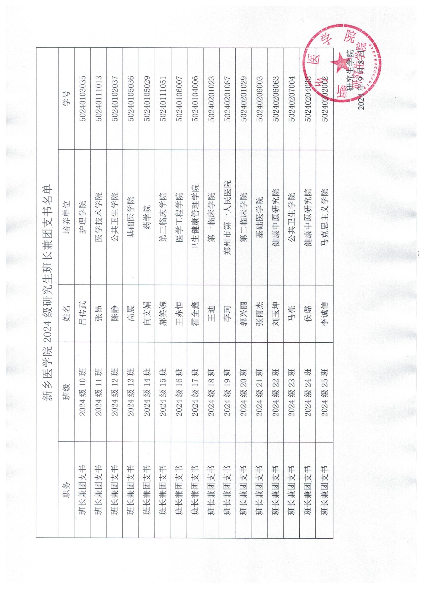 华亿在线手机版(大中国区)2024-2025学年研究生干部(临床专硕)名单公示