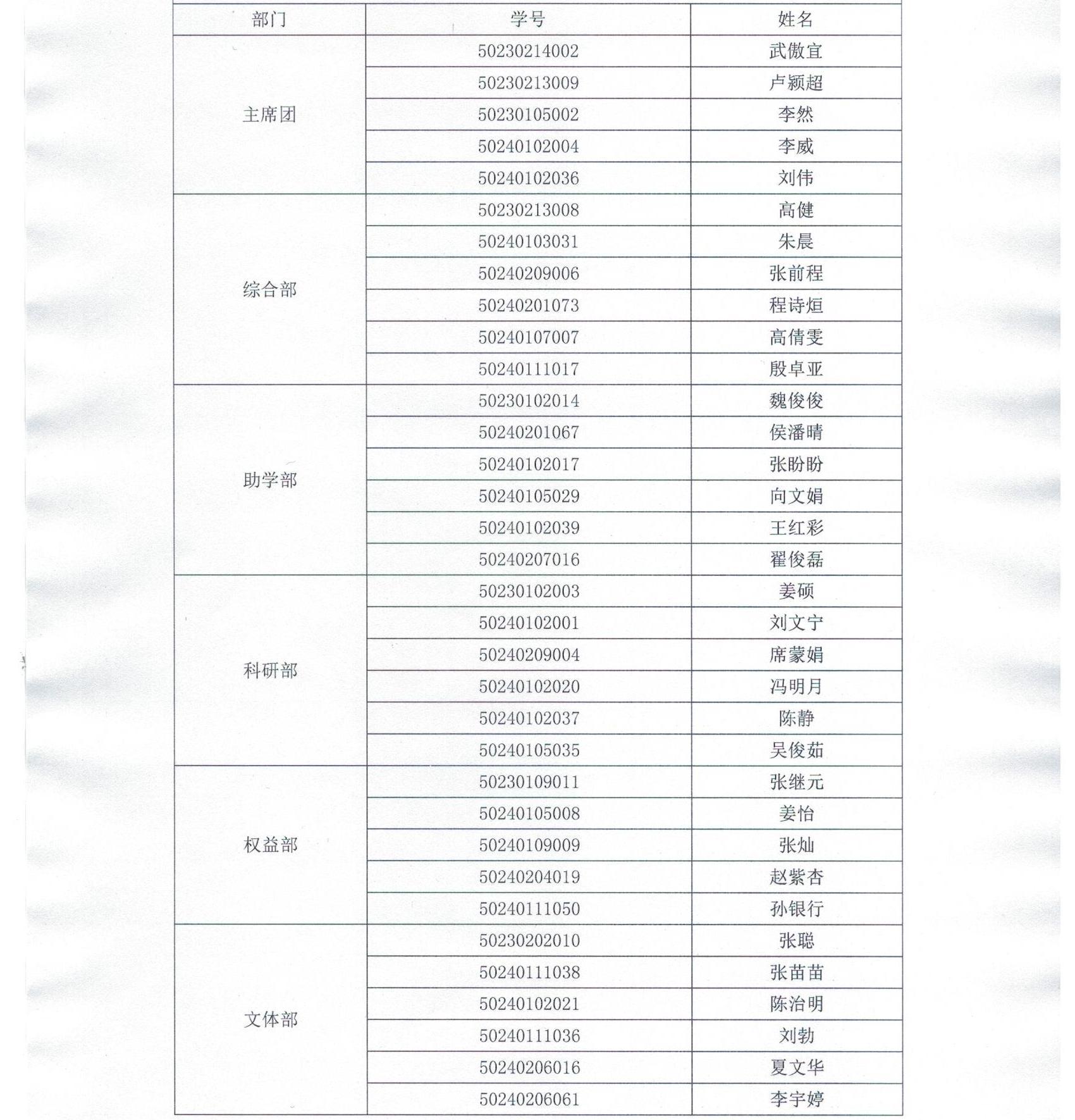 关于2024-2025学年研究生会干部名单公示的通知