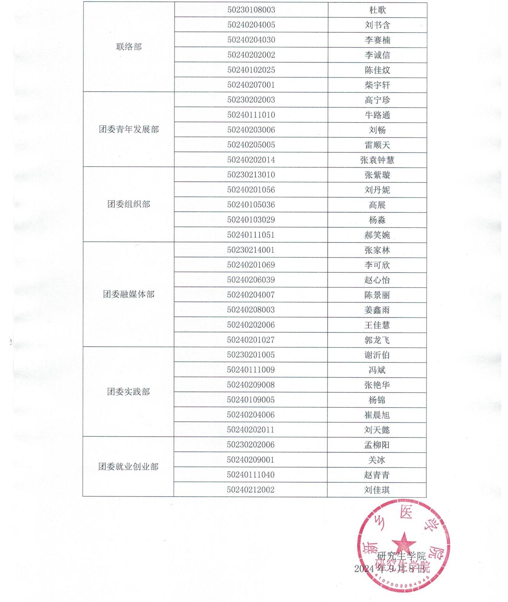 经现场面试及选拔,华亿在线手机版(大中国区)2024-2025学年研究生团学干部拟录用名单公示如下,试用期一个月(9月8日-10月8日),试用期内如有不符合要求者,则免去其职务。