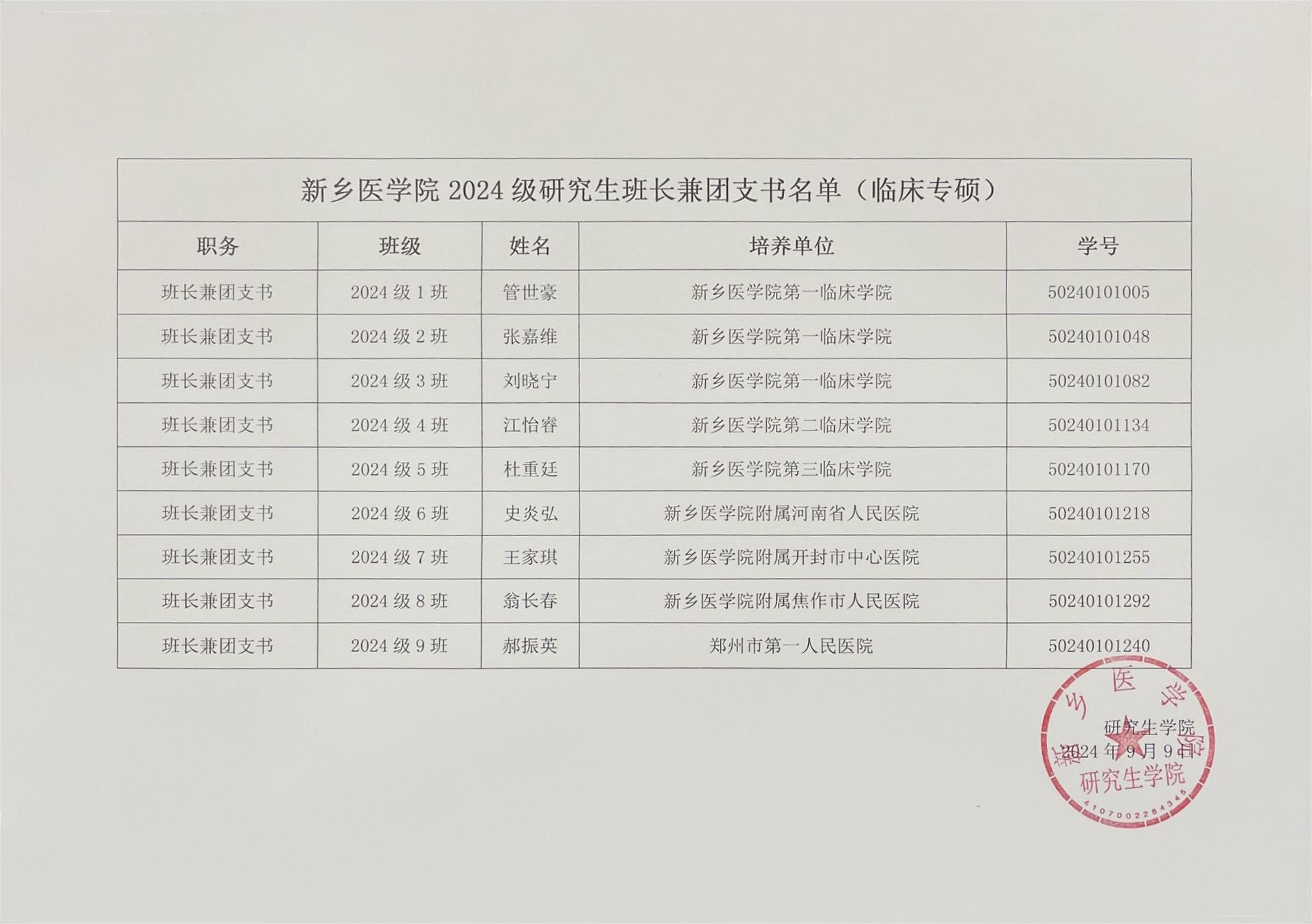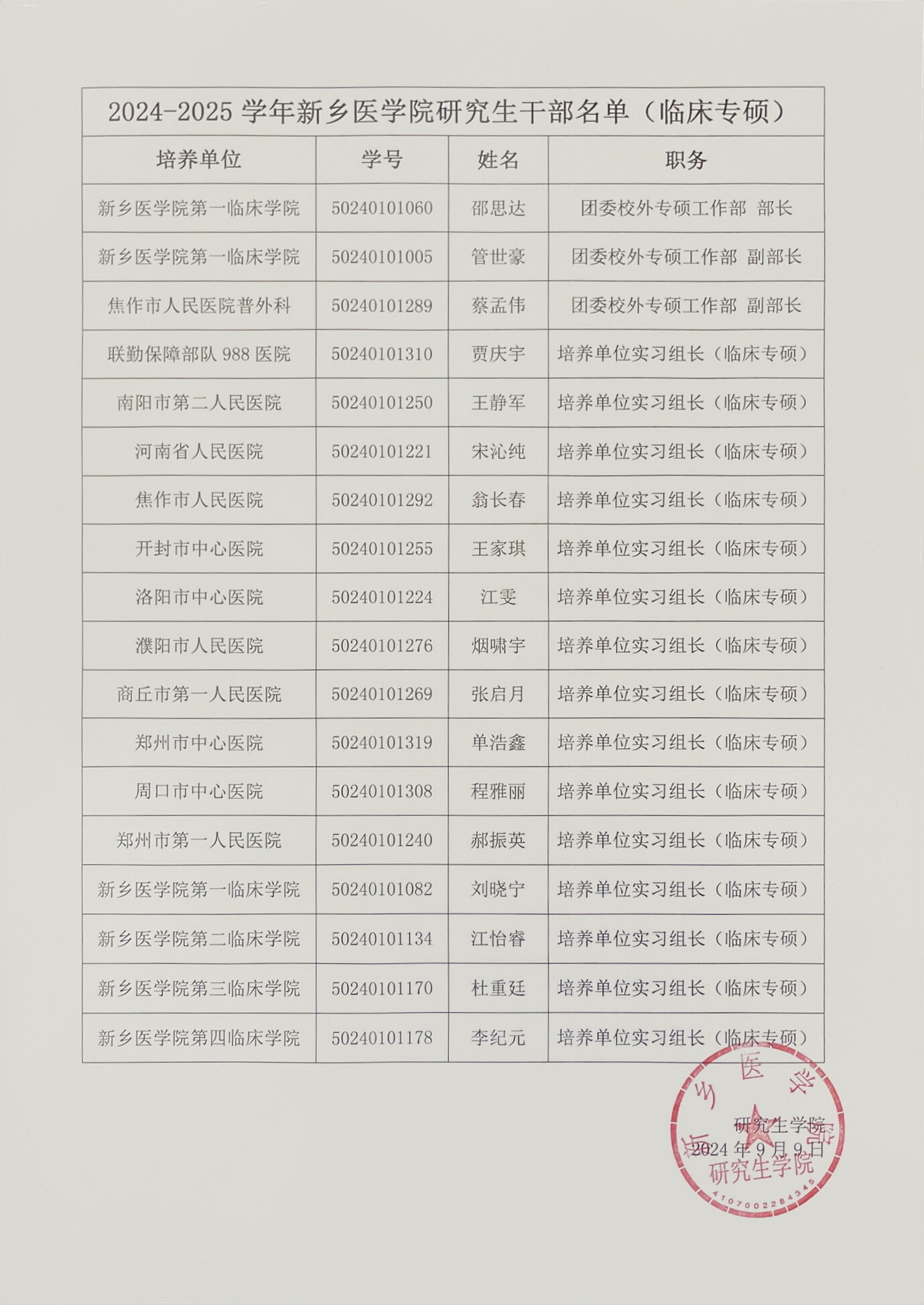 华亿在线手机版(大中国区)2024-2025学年研究生干部(临床专硕)名单公示