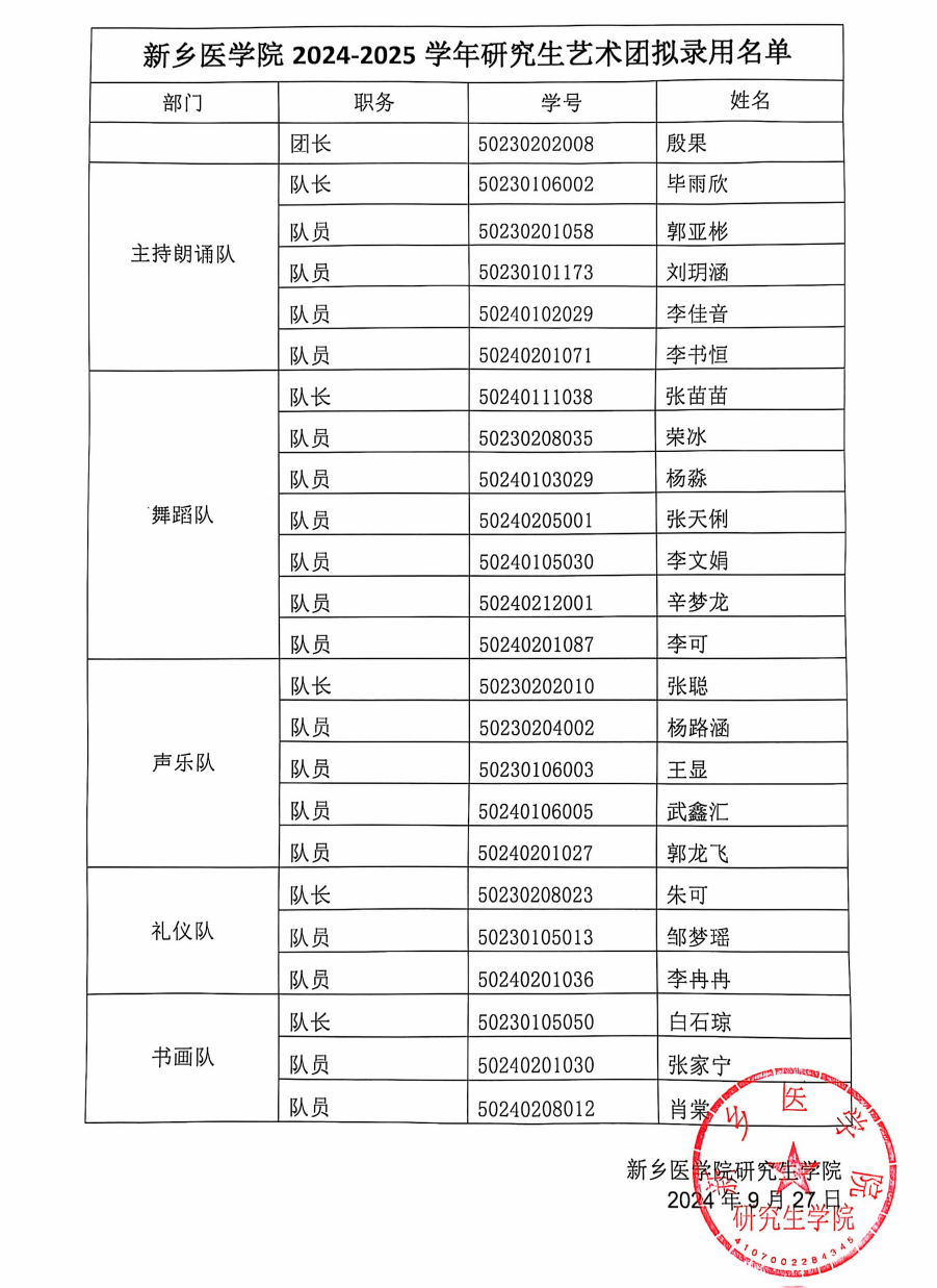 华亿在线手机版(大中国区)2024-2025学年研究生艺术团拟录用名单公示