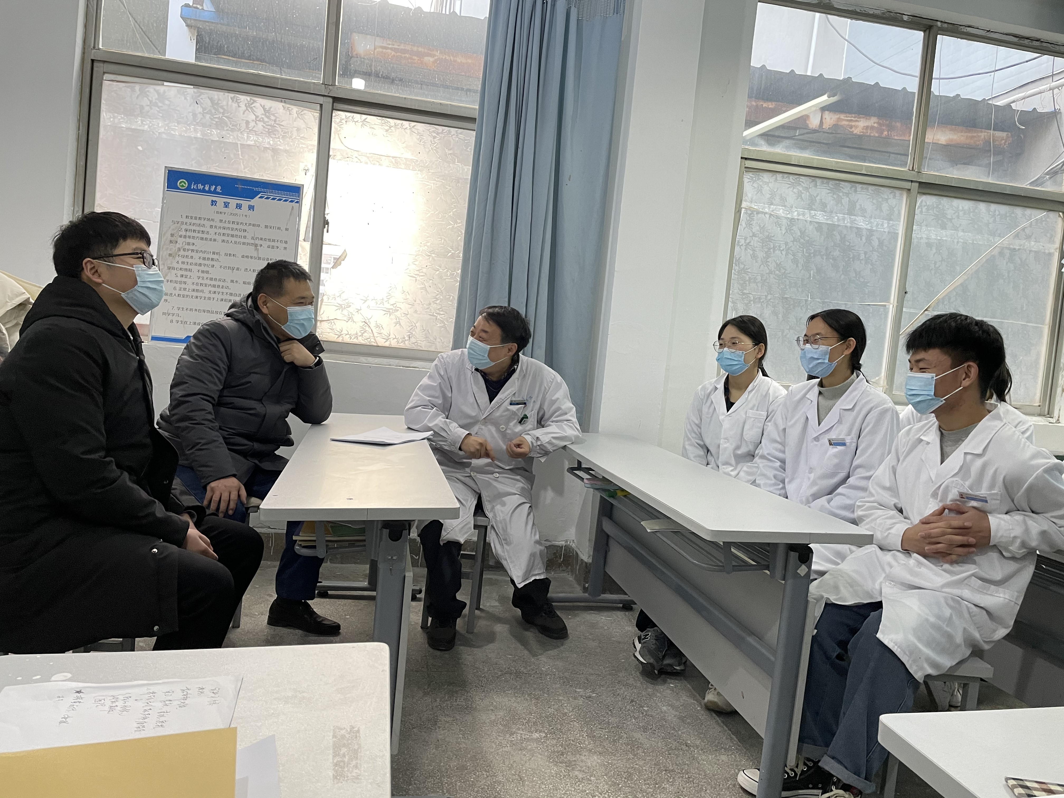在两家医院,李振新分别介绍了我院医学影像技术专业的基本情况,双方就学生实习的教学安排、学生管理、安全管理、日常生活等方面进行深入的探讨和交流。张洁对带教老师的悉心付出表示亲切的问候和衷心感谢,希望实习医院对我院的实习工作和学生管理工作的支持给予进一步的支持和帮助。分别召开实习学生座谈会,详细了解了学生的思想、学习和生活情况,对学生关心的问题进行了解答,勉励同学们要珍惜实习平台和机会,以饱满的精神状态、认真细致的工作态度投入到实习之中,严格遵守实习规章制度,扎实掌握基本实践技能,为后续的就业或继续深造打下坚实基础。实习生们对学院老师的看望感到高兴和鼓舞,纷纷表示一定会遵守实习纪律,刻苦学习,互帮互助,圆满完成实习任务。检查发现,两家直属附属医院高度重视教学工作,教学组织架构完整,带教老师热心教学,教学质量能得到保证。同时,两家医院的带教老师都对我院学生勤学好问、踏实肯干、积极主动的出色表现给予了充分肯定。