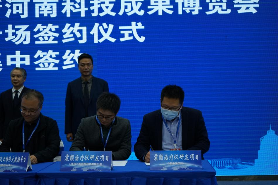 10月22日下午15:00,我院院长于毅,医学装备成果转化办公室主任徐永涛,苏州小蓝医疗科技有限公司总经理丁衍三人参加我院入选的第四届高博会合作项目“震颤治疗仪”签约仪式。我院与小蓝医疗就人才培养,科研合作,产品转化等多个方面签订合作框架协议。此次签约对我院科技创新与成果转化能力的进一步提升具有重要意义!