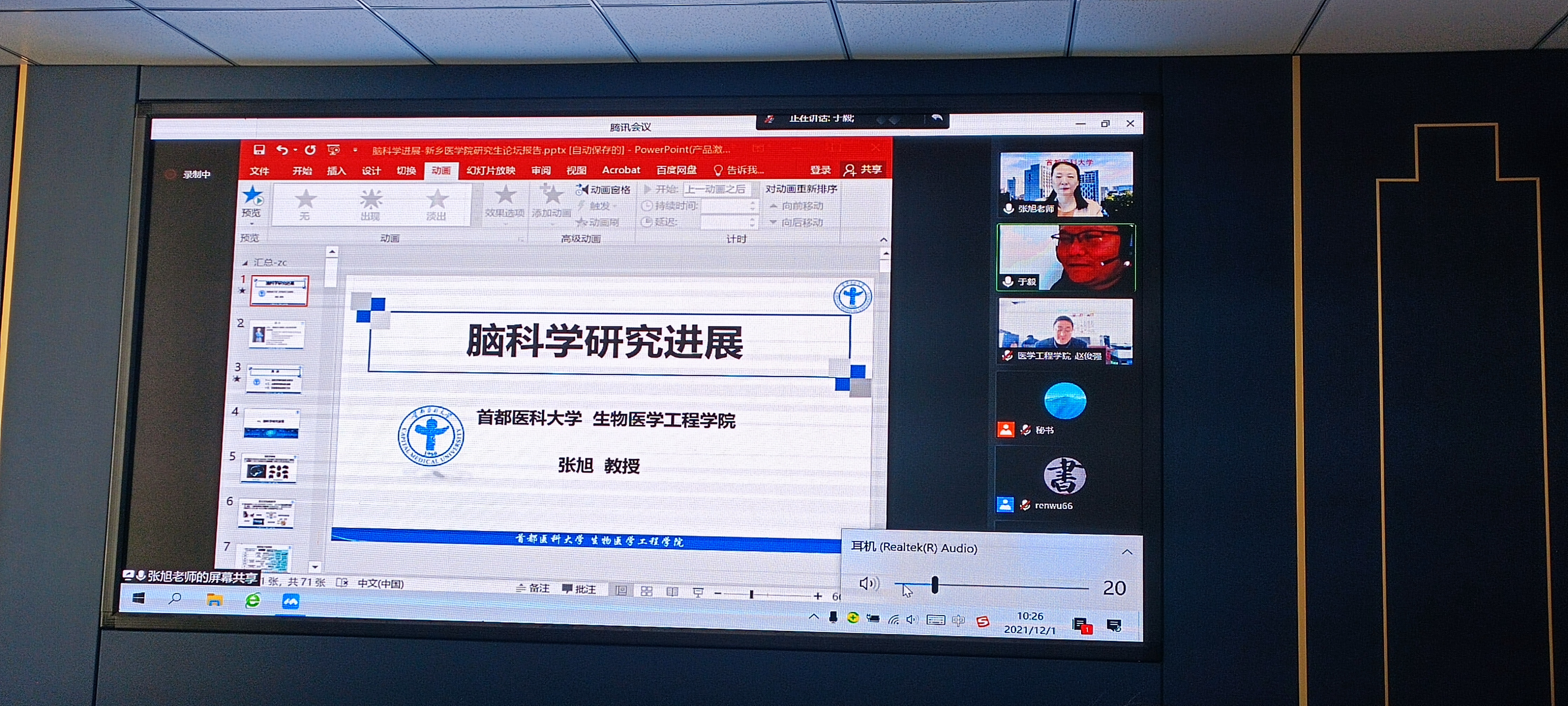 为积极响应落实我校与首都医科大学京豫对口合作,12月1日上午9:30,受我院院长于毅邀请,首都医科大学生物医学工程学院院长张旭教授以“脑科学研究进展”为题进行线上学术报告,报告由我院副院长赵俊强主持,相关研究领域的教师和研究生聆听了本次报告。