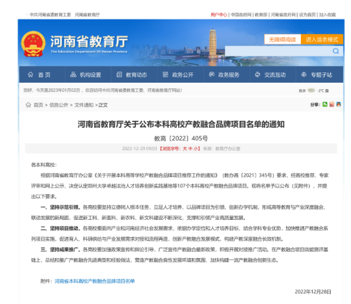 近日,河南省教育厅下发《河南省教育厅关于公布本科高校产教融合品牌项目名单的通知》(教高〔2022〕405号),我院牵头联合上海邑成测试设备有限公司申报的智能医学工程现代测试技术共建实验室获得河南省本科高校产教融合品牌项目认定。