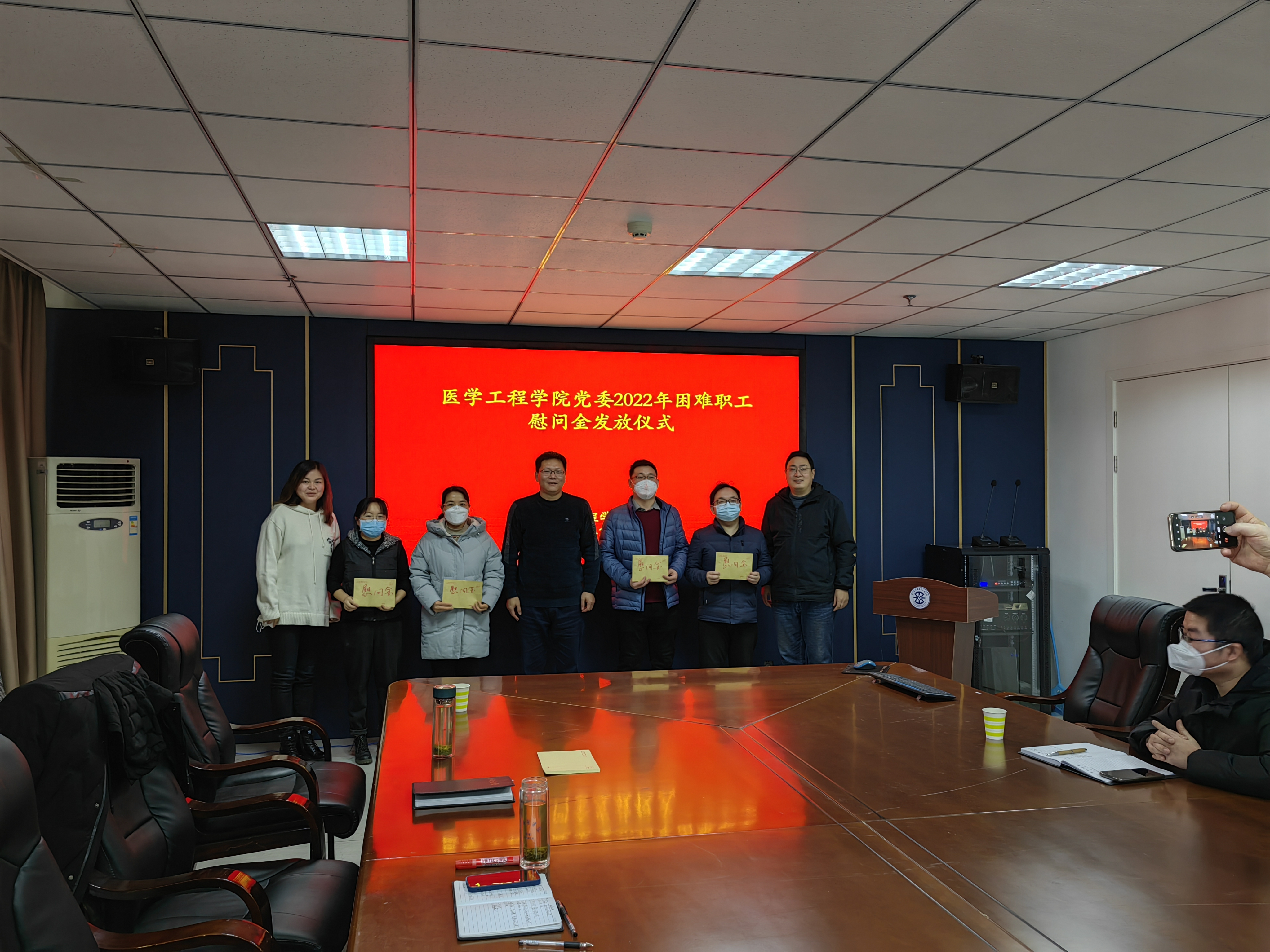 1月9日上午,我院党政班子于科技楼716会议室举行了困难职工慰问金发放仪式。于毅院长与张洁书记与学院内困难职工代表面对面亲切交谈,详细了解他们的身体状况、家庭负担、生活开支等情况,并代表学院党委和工会分别向他们发放了帮扶慰问金。同时,鼓励他们树立信心,用乐观的心态对待生活,战胜困难,早日渡过难关。