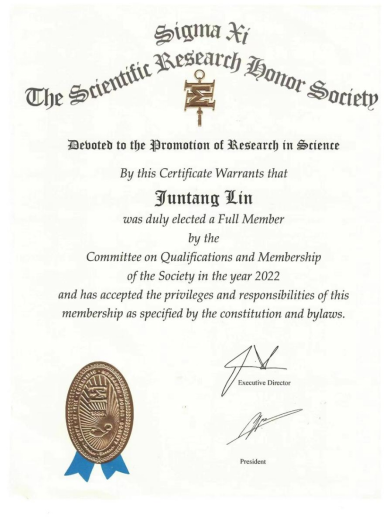 近日,我院林俊堂教授当选美国科学研究荣誉学会(Sigma Xi,英文全称:The Scientific Research Honor Society)正式会员。