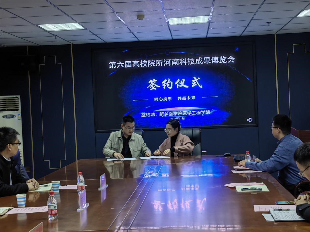 邓亚辉介绍了公司的历史及近年来的运营情况,他表示未来公司在河南将深入与我校进行合作,将技术转化为产品。随后由我院解琳艳博士与邓亚辉总经理签订了家用生理参数监测仪关键技术研究及设备开发协议,到账经费20万元。