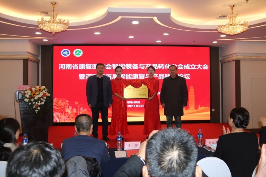 冯晓东和王辉共同主持河南省康复医学会第一届智能装备与产品转化分会主任委员单位揭牌仪式