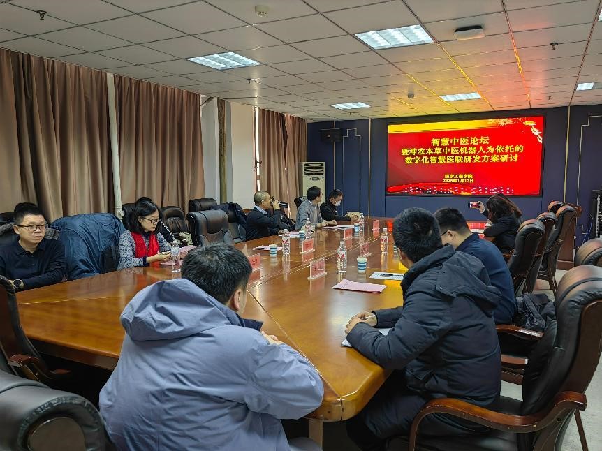 1月17日,我院在科技楼716召开智慧中医论坛暨神农本草中医机器人为依托的数字化智慧医联体研发方案研讨会,会议邀请天津中医药大学任海燕教授、天津大学周鹏教授进行学术交流,我院特聘教授刘清君担任主讲。校党委书记任文杰出席本次会议,我院党委书记王守英、副院长任武、组织员柴汝闯、项目组成员及研究生代表参加本次会议。