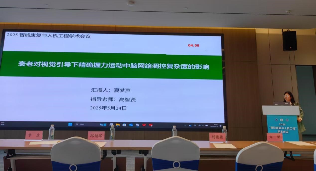 我院高智贤博士及其指导的研究生夏梦声参加了此次会议,并在人工智能康复技术分会场做口头报告《衰老对视觉引导下精确握力运动中脑网络调控复杂度的影响》。