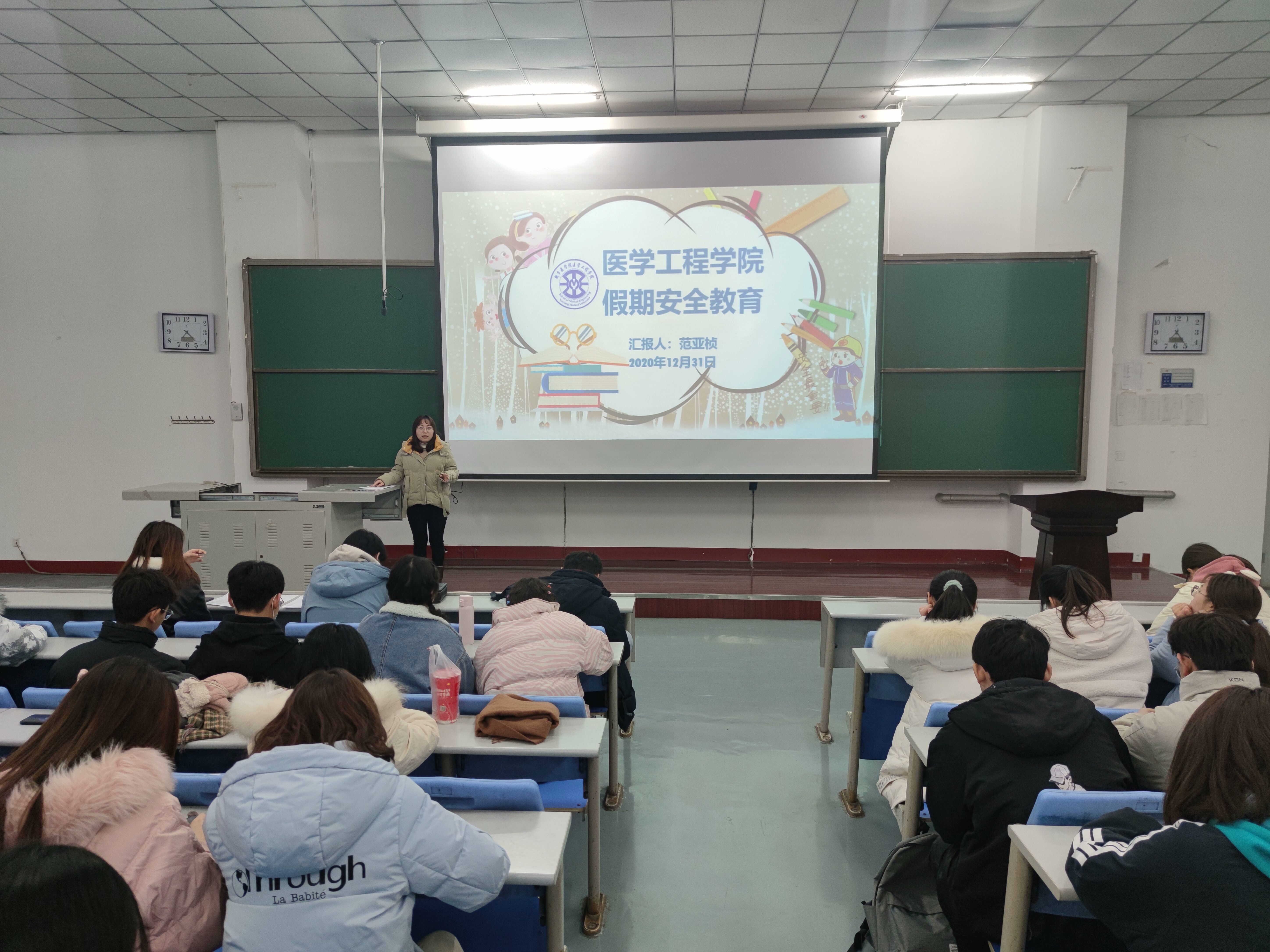 (文/袁坤)为推进我院的安全教育工作,提升我院学子的安全意识。12月31日晚7点半,我院于三教D2教室举办假期安全教育宣讲,医学工程学院团委书记陈洪涛、辅导员范亚桢莅临现场。本次宣讲由范亚桢担任主讲,我院全体学生到场学习。