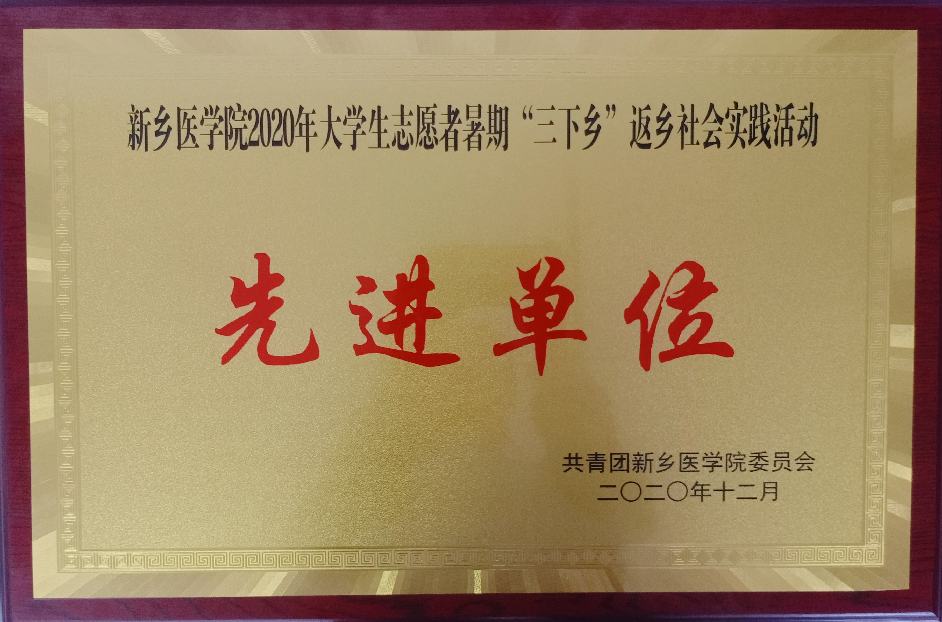 4月28日上午9点,我校在第一报告厅对在2020年大学生志愿者暑假“三下乡”返乡社会实践活动中表现突出的集体进行表彰,我院荣获得先进单位奖。