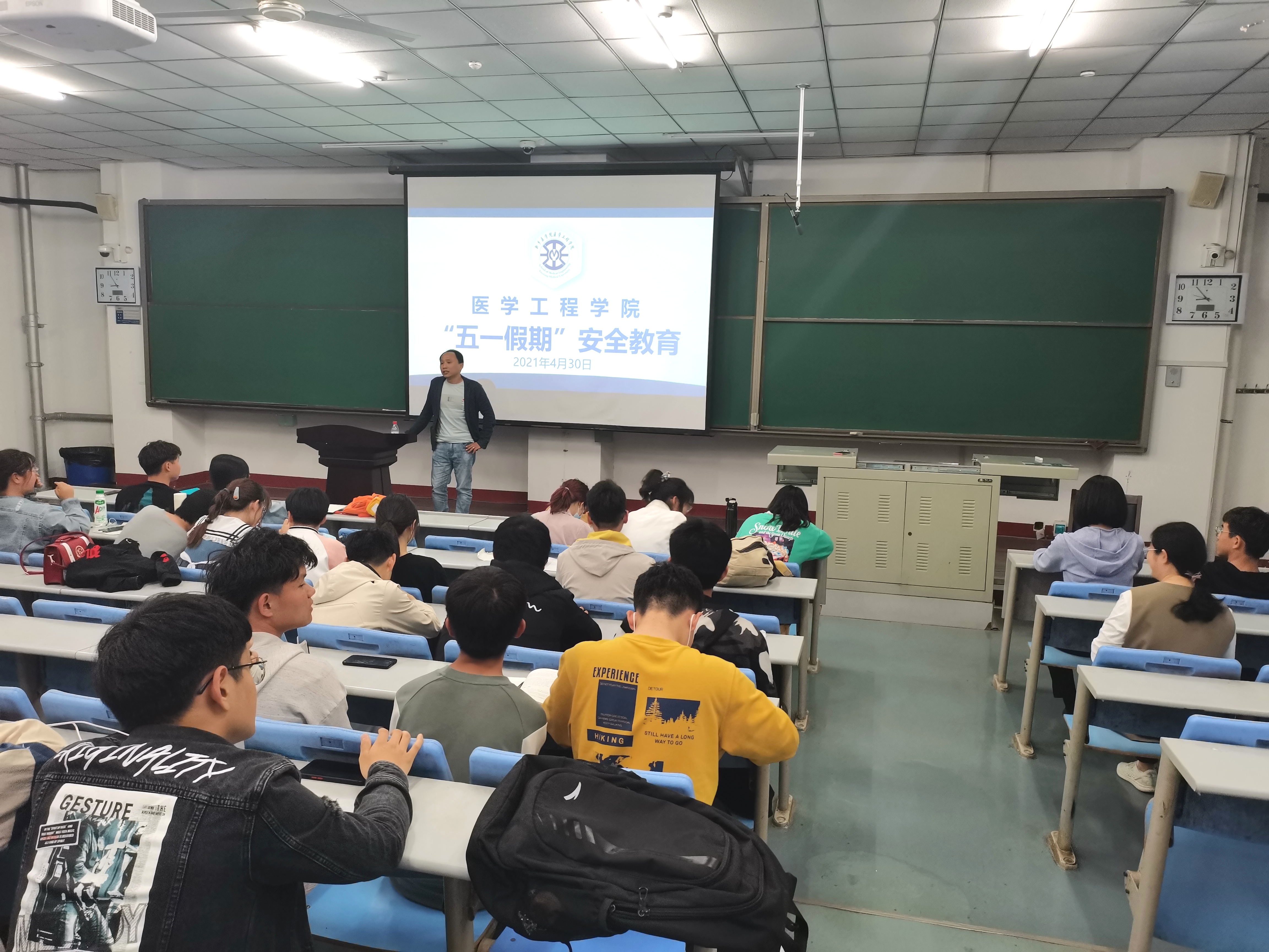 五一假期将至,为切实增强学生的安全防范意识和避险能力,保障学生安全,提高学生自我安全保护能力,我院于4月30日下午七点在第三教学楼3201教室召开了“安全教育”主题大会。医学工程学院团委书记陈洪涛和辅导员范亚桢莅临此次会议,全体大一学生参加会议。