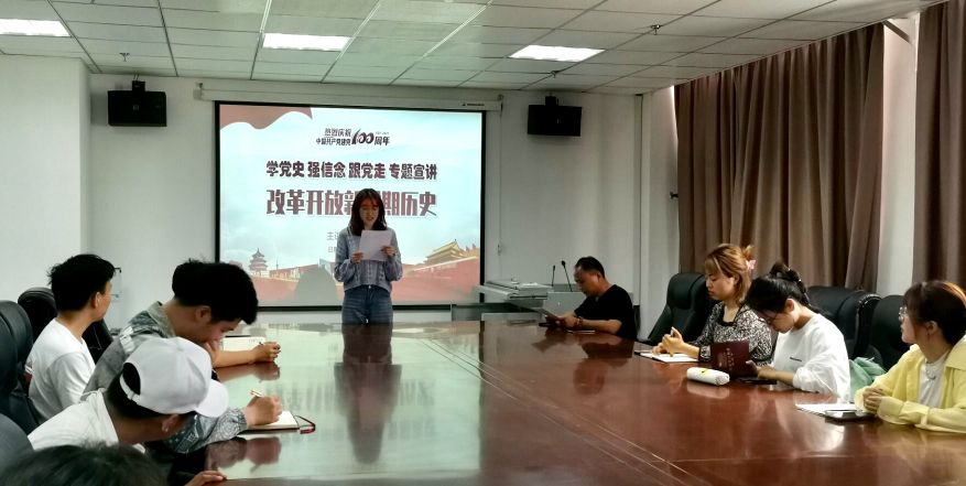 会议伊始陈洪涛老师前沿导读改革开放的开展由此引出宣讲的主要内容。会议内容主要分为五个部分:重大命题、壮阔蓝图、火热实践、锦绣前程、改革开放的未来思考。依次讲解了党史中提出建设有中国特色的社会主义确定继续前进的正确道路、战力步骤和方针政策开创社会主义现代化建设新局面沿着中国特色社会主义道路继续前进并提出了改革开放未来规划。会议结束后各团支书认真做笔记积极讨论更加深入地了解改革开放新时期历史。