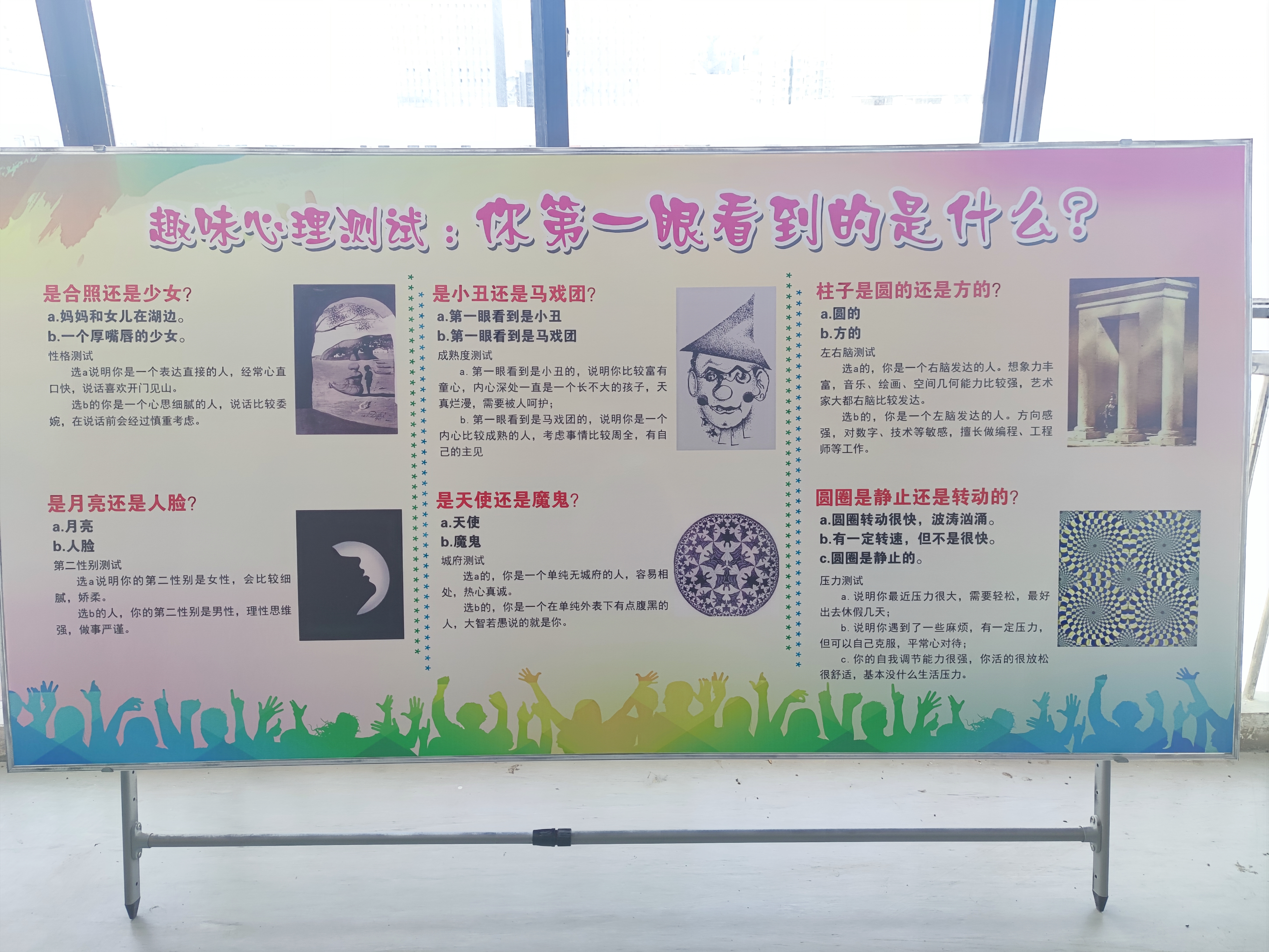 本次大学生心理健康月我院举办了丰富多彩的心理健康文化活动。包括微信推送有关心理健康的相关文章、书籍和电影,引导同学们通过关注微信公众号来学习心理健康知识;开展趣味心理图片展,向同学们宣传心理健康的科普知识,提高他们的心理自助能力;各班组织开展有关“心理健康月”的主题团日活动,让同学们放松心情,缓解心理压力,感受活动带来的快乐。