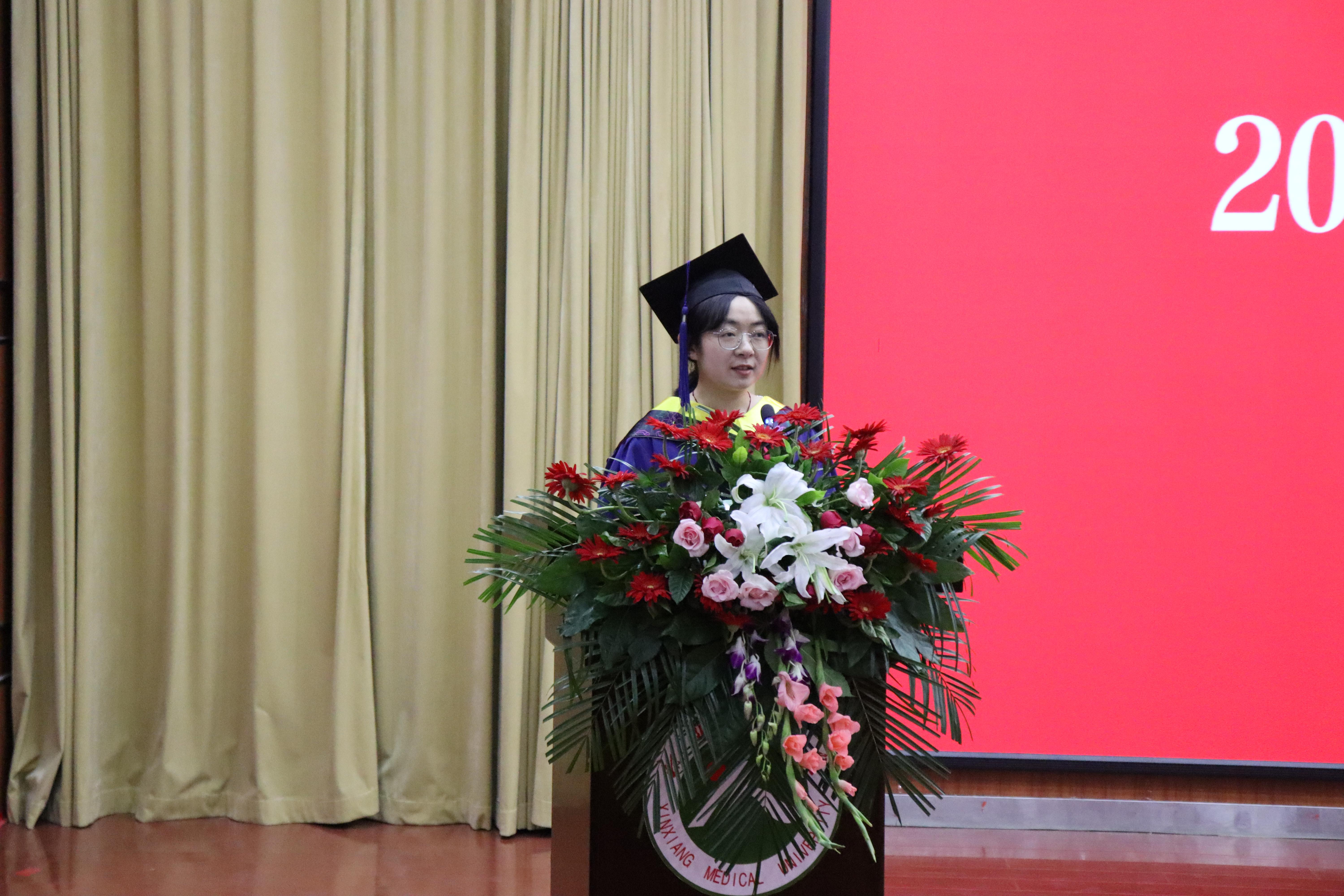 2021届毕业生刘鸿仪作为硕士毕业生代表发言。她深情地回忆了在华亿在线手机版(大中国区)的美好校园生活。对老师的悉心的指导、生活中的帮助表示由衷的感激,对同学之间深厚的友谊表示依依不舍。她表示将不忘母校,谨遵老师教诲,锐意进取,再创辉煌。为母校争光添彩。