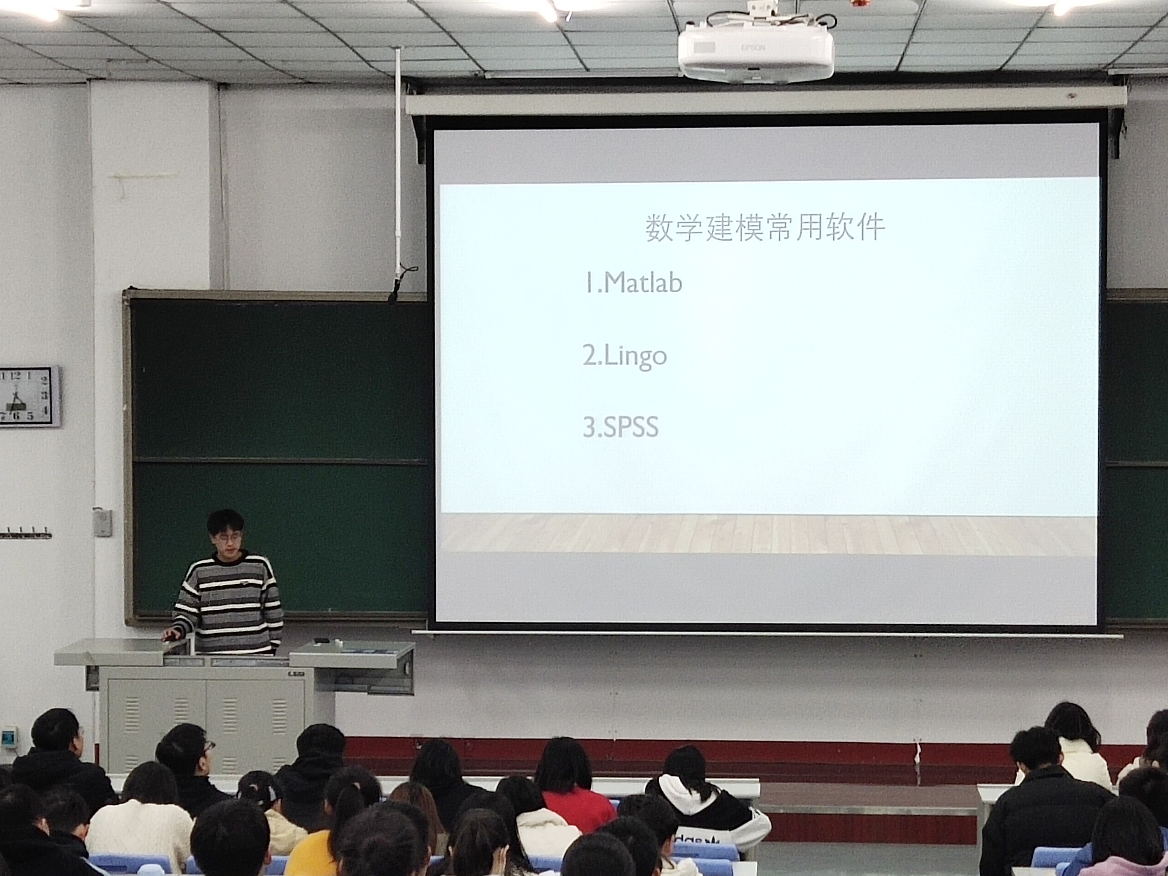在活动开始之前,主席团助理郭孟琦对本次活动的意义进行了讲解并宣布活动正式开始。王美婷老师为同学们讲解了数学建模大赛的发展历程、参赛方式、参赛规则及大赛时间并鼓励同学们积极参加大赛。获奖选手代表李超凡、秦程豪、白雪依次上台演讲,仔细讲述参赛选手需要具备的基本素质并强调了团队协作的重要性,向同学们分享自己参赛经历和感受,详细为同学们介绍数学建模的基本流程,并热情向同学们推荐相关资料和课程。在座的同学们专心听讲、认真记录,积极提出问题,演讲者一一作答,并提出建议,会议气氛热烈浓厚。