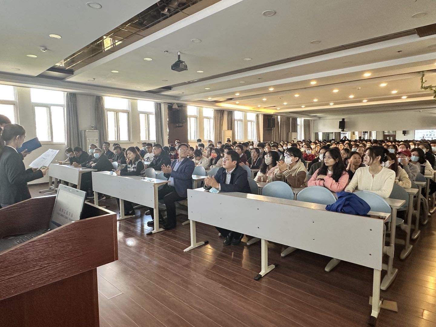 在会议正式开始之前,新生们通过学院宣传片直观的感受到了我院历史底蕴与办学成果,详细了解了办学特色、教学成就与学术风采,引得新生们赞叹连连。
