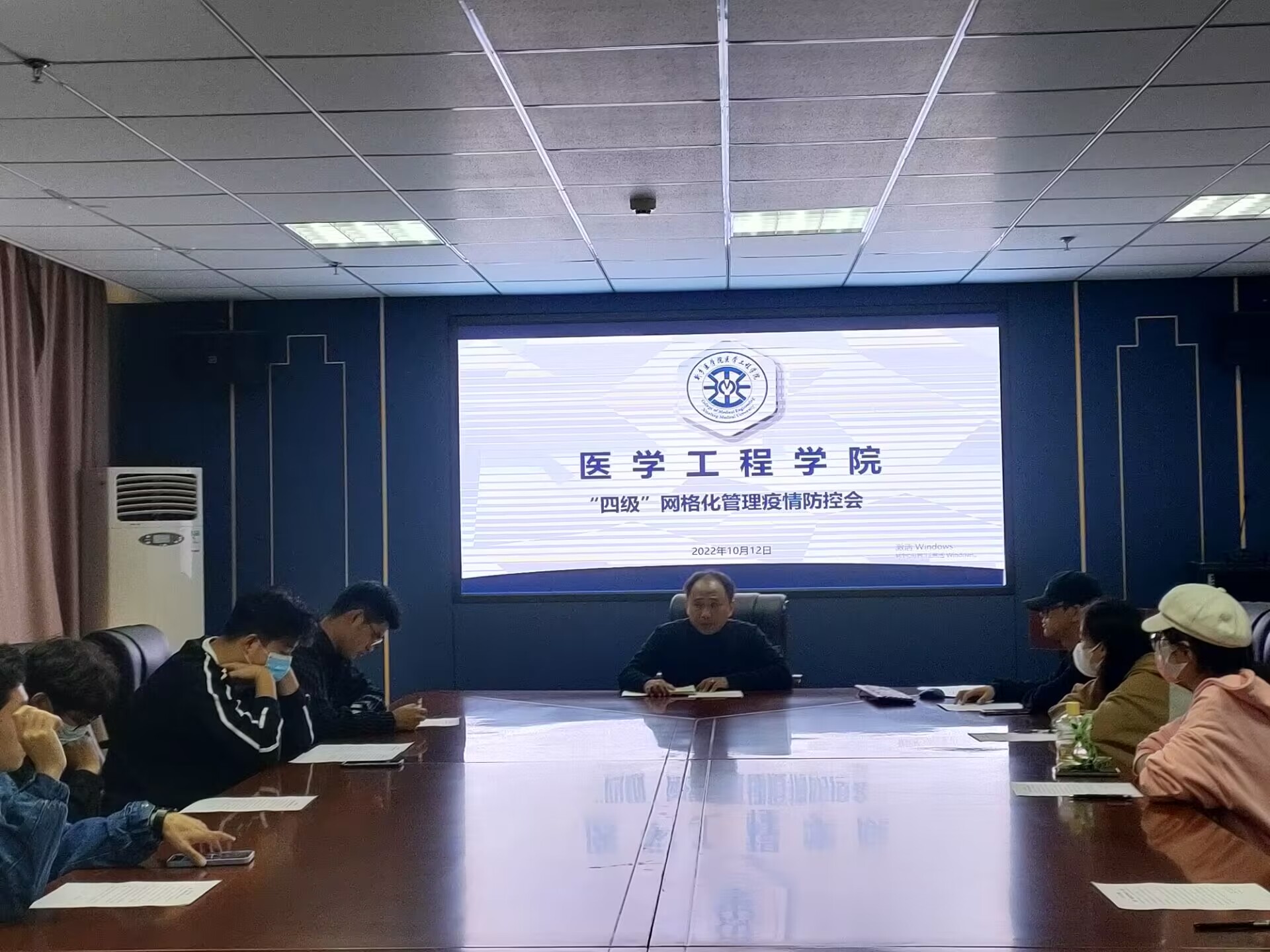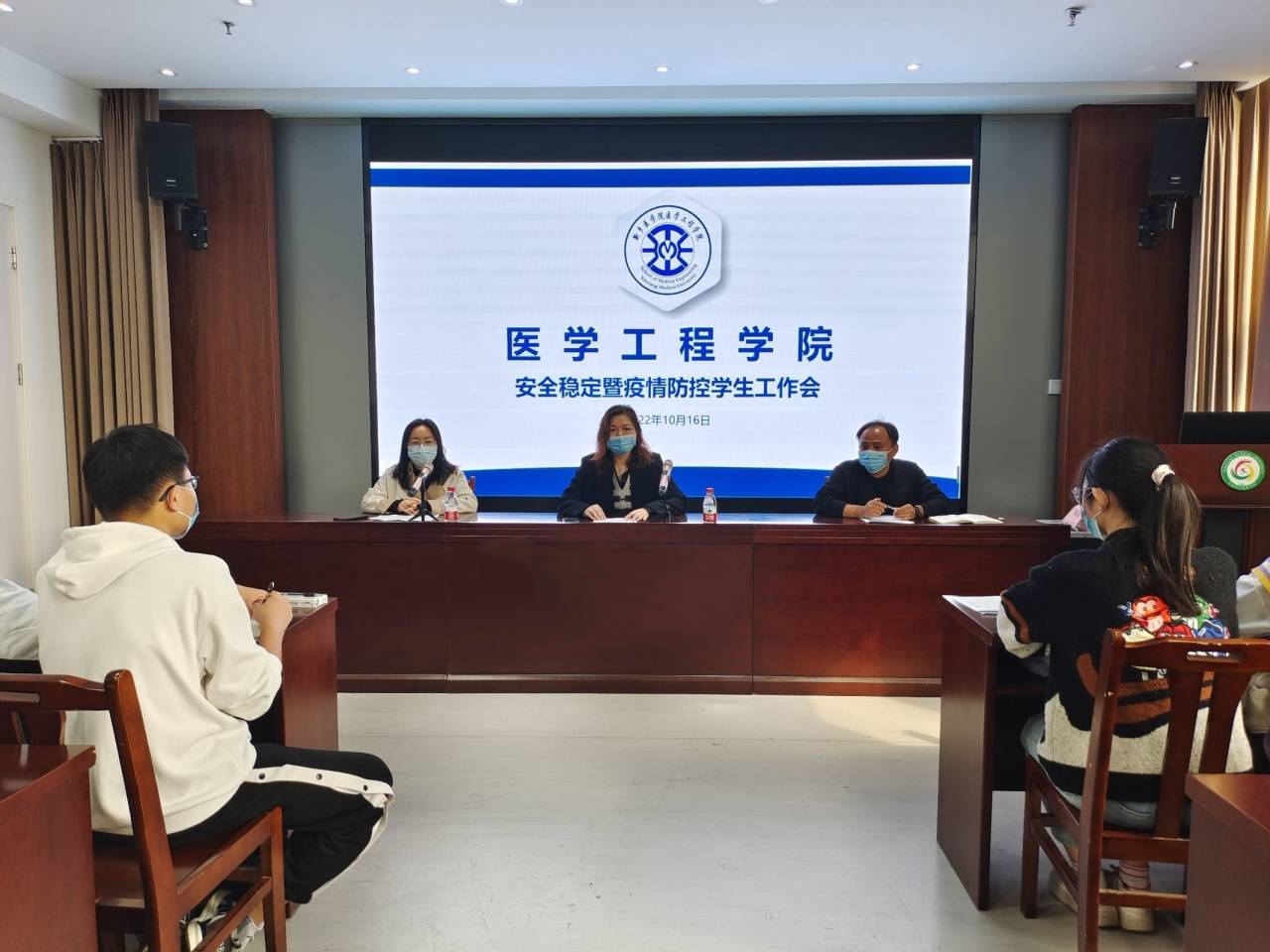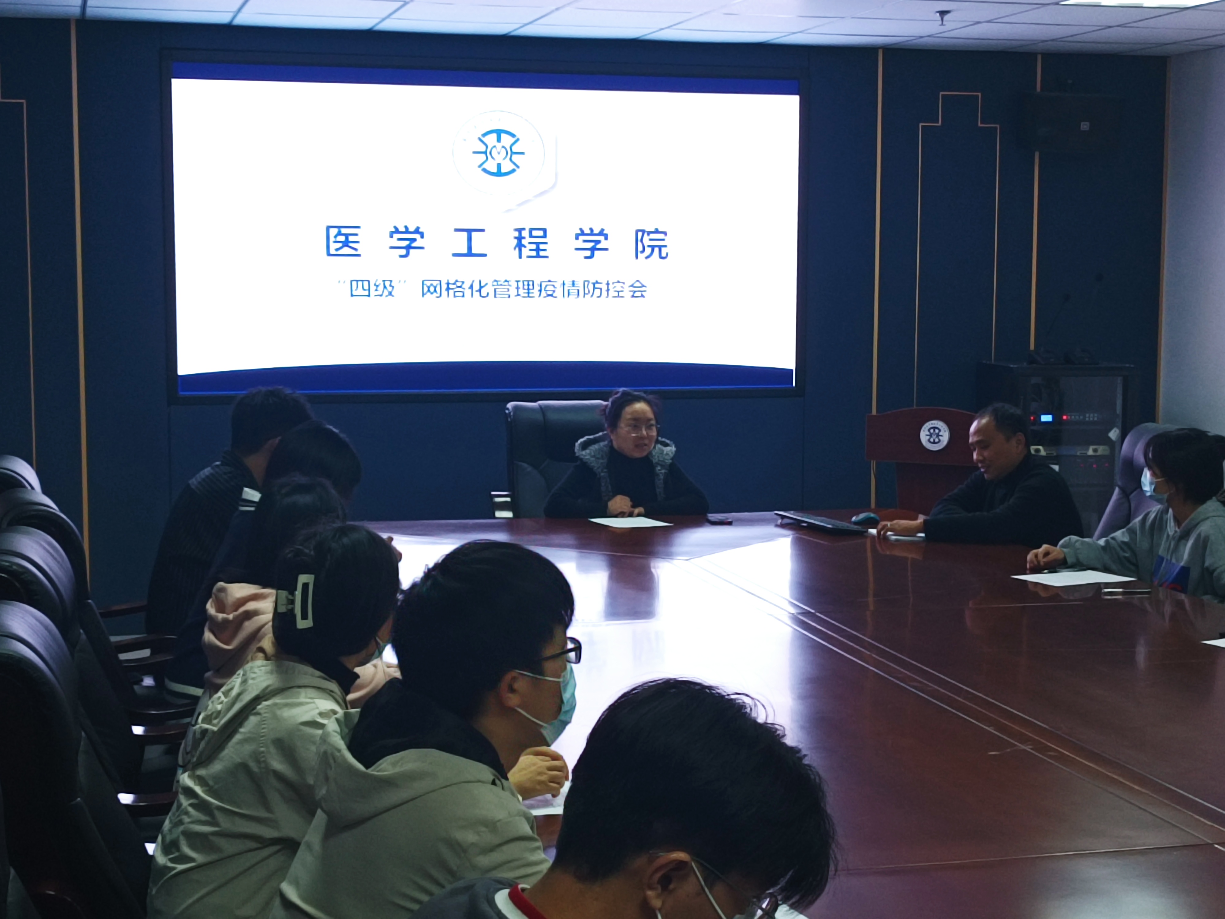 为做好学院的疫情防控工作,保护学院师生的生命健康安全,我院于10月16日在科技楼五楼会议室和716会议室分批次开展了学生干部疫情防控工作会,本次会议由团委书记陈洪涛主持,我院党委副书记张洁、辅导员范亚桢、全体党员、班长、寝室长参加。