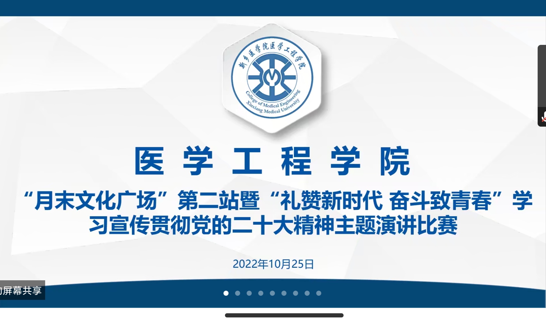 本次演讲比赛旨在学习宣传党的二十大精神,虽有疫情阻隔,但师生们对宣扬二十大精神的热情仍然打破困难促使比赛顺利举办。在此次比赛中同学们激扬文字,从多方面、多维度阐释了中国共产党以恢弘气象点亮了一个新时代,大家亦挥斥方遒,举手投足间尽显新时代下新医学子风采。此次活动展现了我院学子立鸿鹄志,奉献青春,做奋斗者,贯彻二十大精神的决心。在比赛中陈洪涛认真观看同学们的演讲,对同学们的认真准备提出了表扬,表示我们一定要认真学习二十大的会议精神,以身作则,以实践出真知。范亚桢悉心指导,针对每一位参赛人员指出不足和进步空间,同学们认真聆听,谆谆教诲间尽显师生和谐。主持人李瑞合理安排比赛进程并对每一位参赛人员予以肯定以及做好每一位演讲者之间的过渡,让比赛平稳进行。