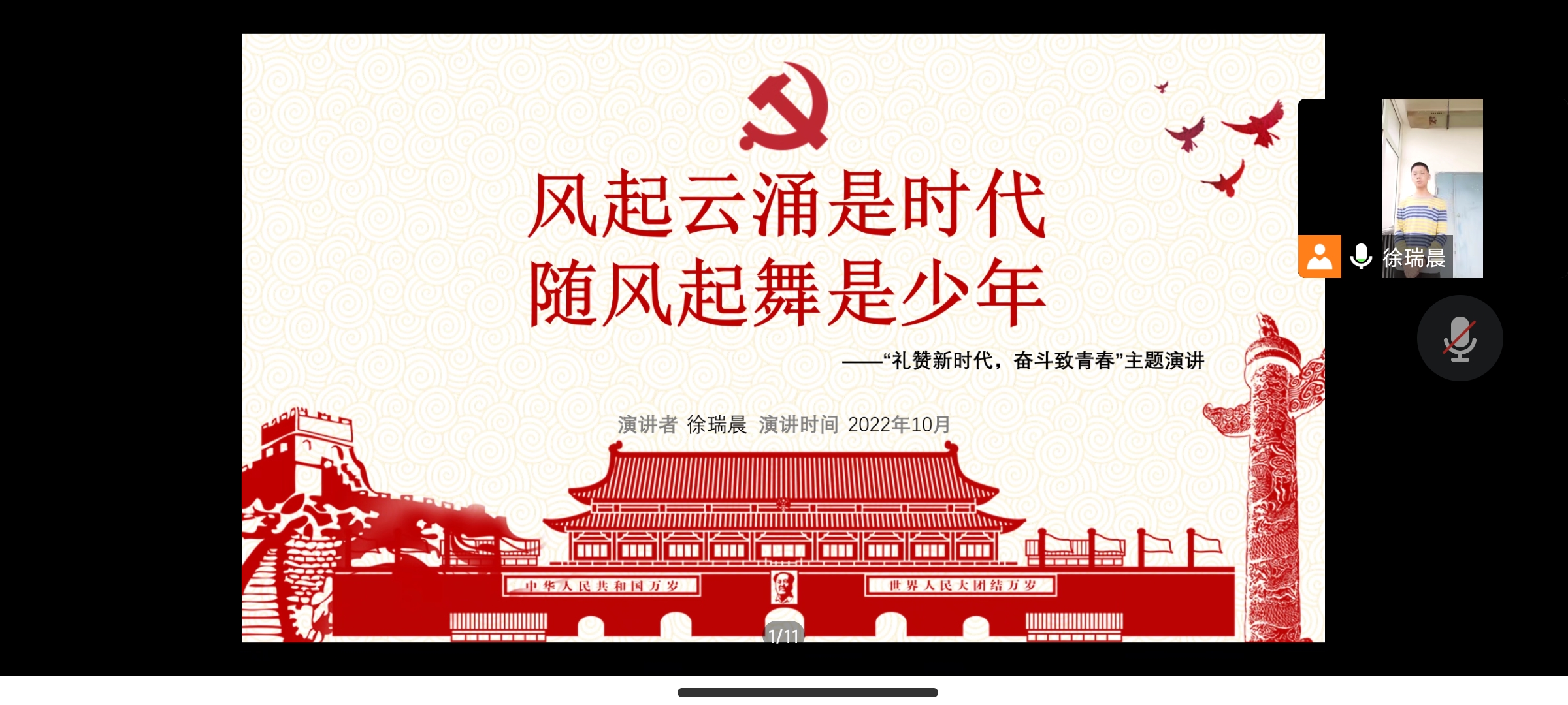 为庆祝党的二十大胜利召开,弘扬伟大建党精神,我院于10月25日下午在腾讯会议开展“礼赞新时代 奋斗致青春”主题演讲比赛,本次比赛由事务部李瑞主持,团委书记陈洪涛、辅导员范亚桢以及二十余位同学参加。