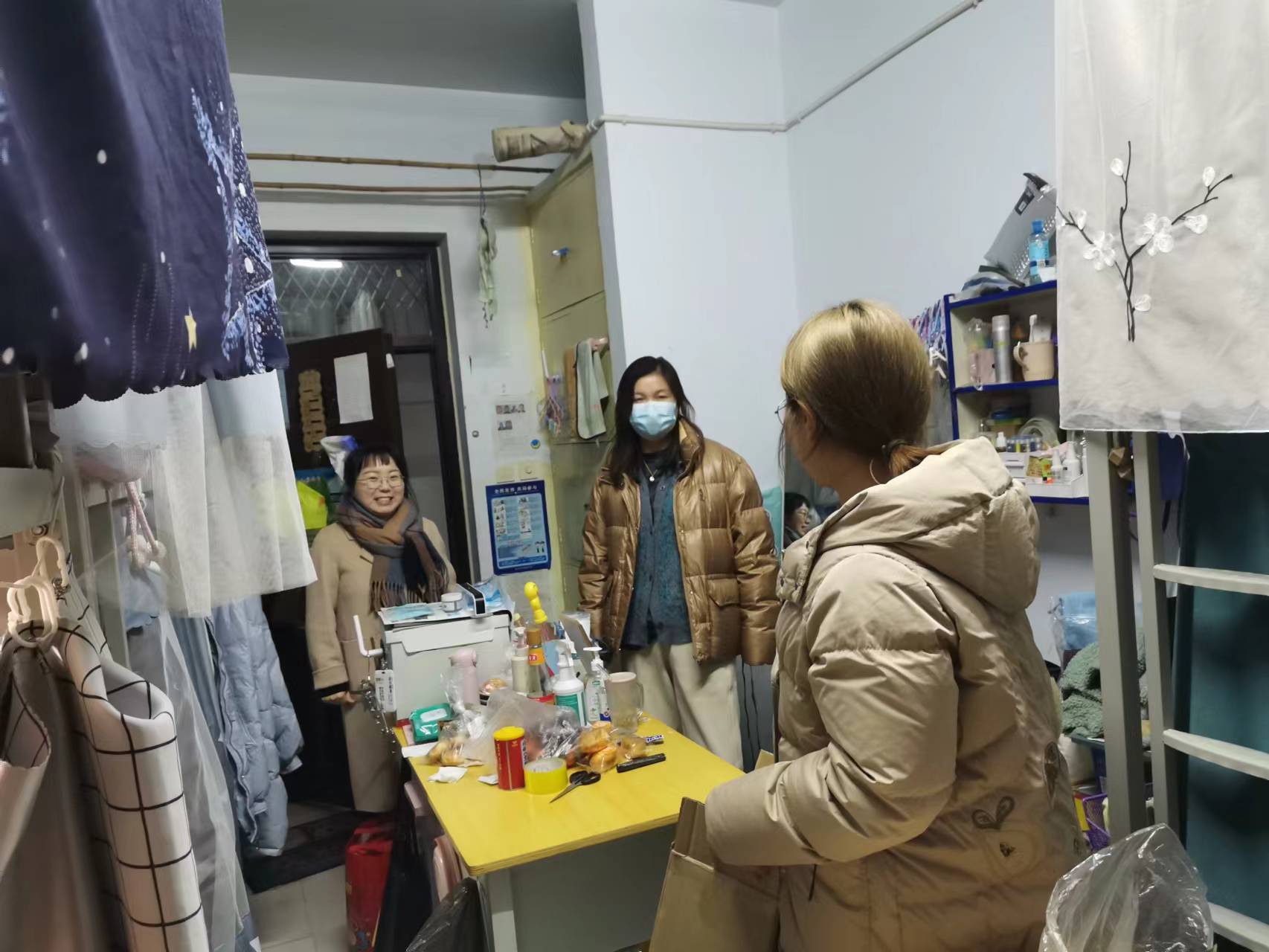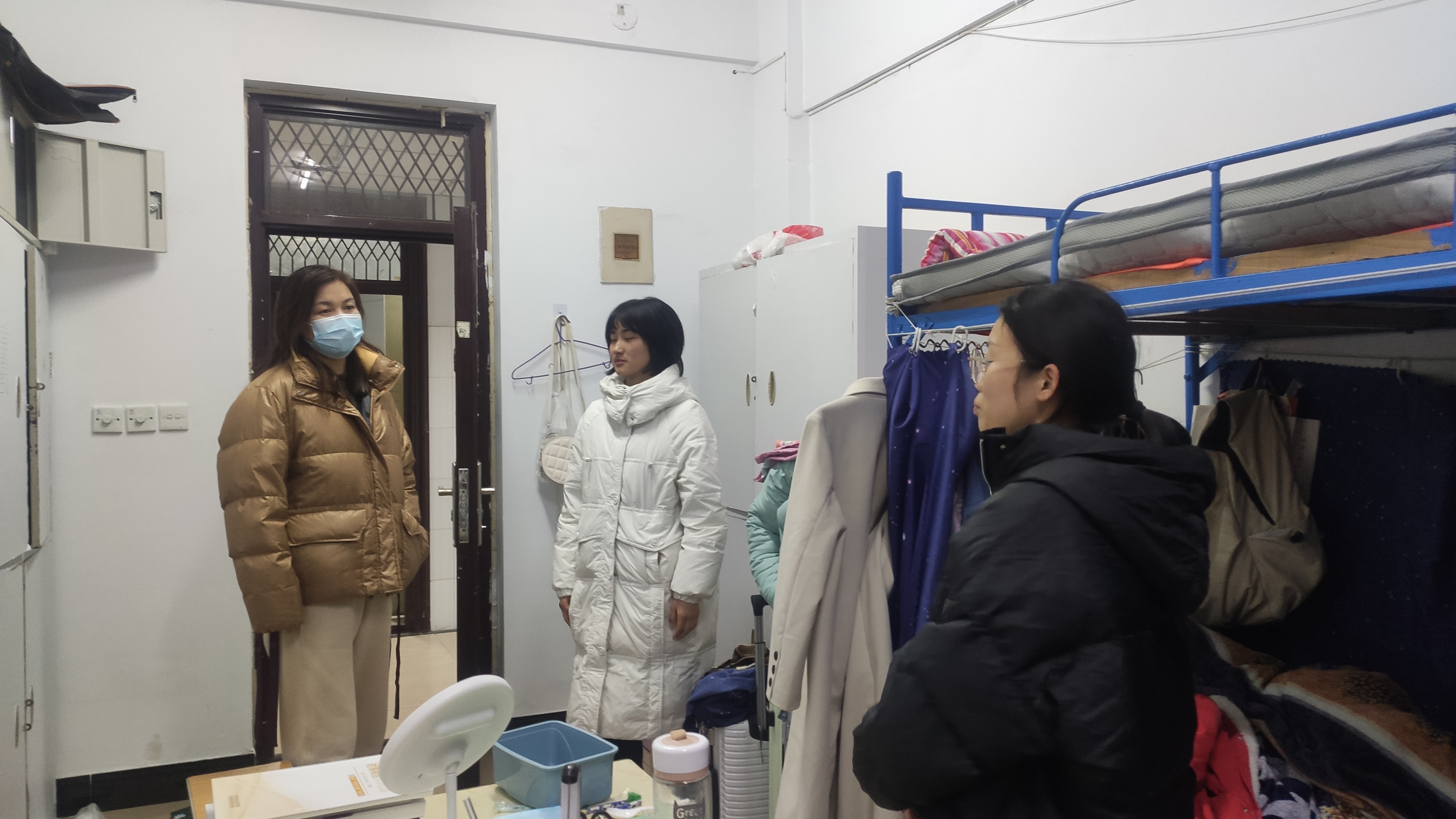 为明晰学生返校后的准备情况,及时了解学生的思想动态、心理状况,2月12日下午五点,我院党委副书记张洁、团委书记陈洪涛、辅导员范亚桢前往宿舍慰问返校学生,为学生送去关心和问候。