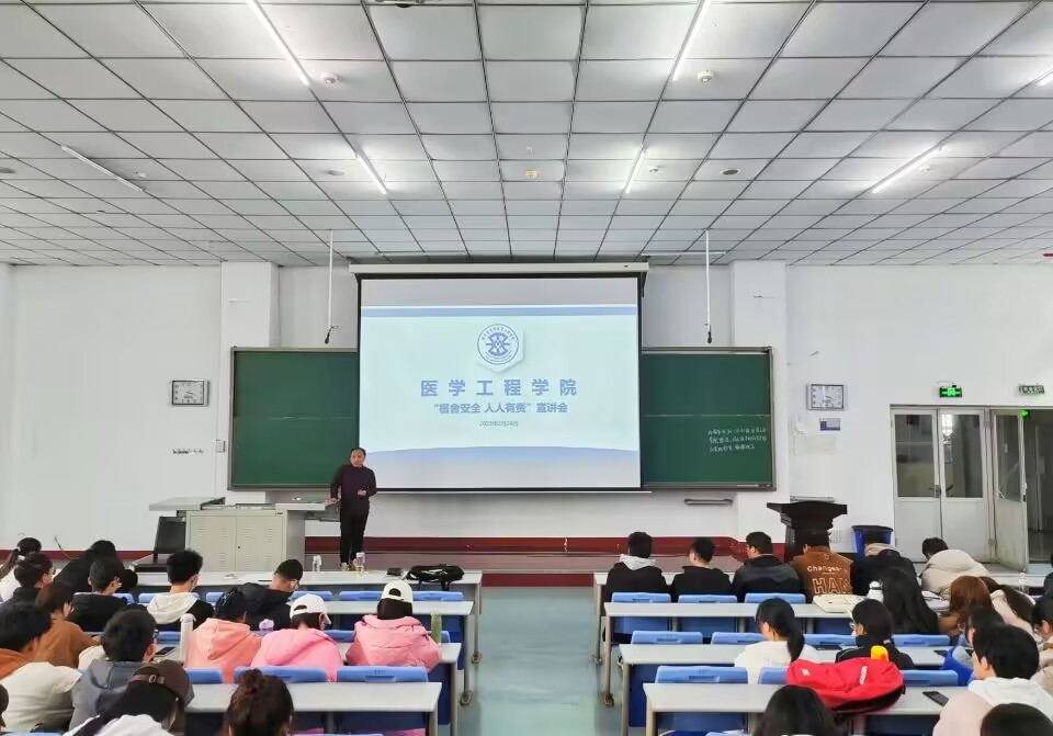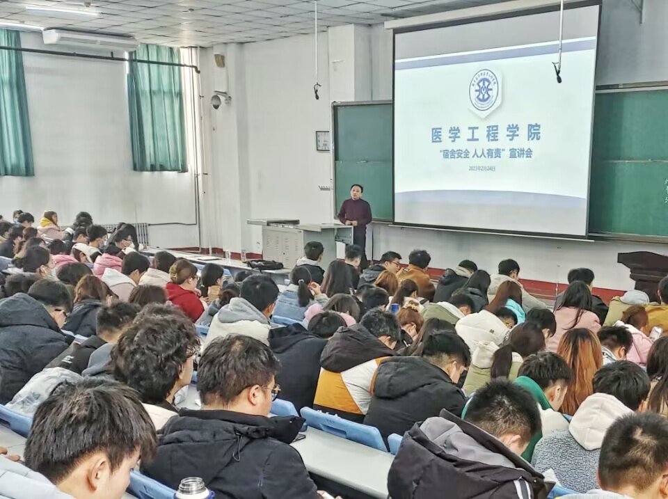 为进一步提高学生安全意识,做好学生宿舍管理工作,营造良好的宿舍生活氛围,我院于2月24日下午于第三教学楼D2大教室举办“寝室安全 人人有责”宣讲会。会议由团委书记陈洪涛主持,辅导员范亚桢以及医学工程学院2020级至2022级学生参加本次宣讲会。