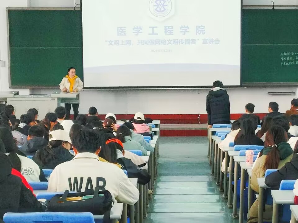 为增强学生的思想道德修养和文明素质,营造更好的校园网络氛围,积极响应我国对于网络文明建设的号召,我院于2月24日于第三教学楼D2大教室举办“文明上网,共同做网络文明传播者”宣讲会,会议由辅导员范亚桢主持,团委书记陈洪涛以及2020级至2022级全体学生参加了本次大会。