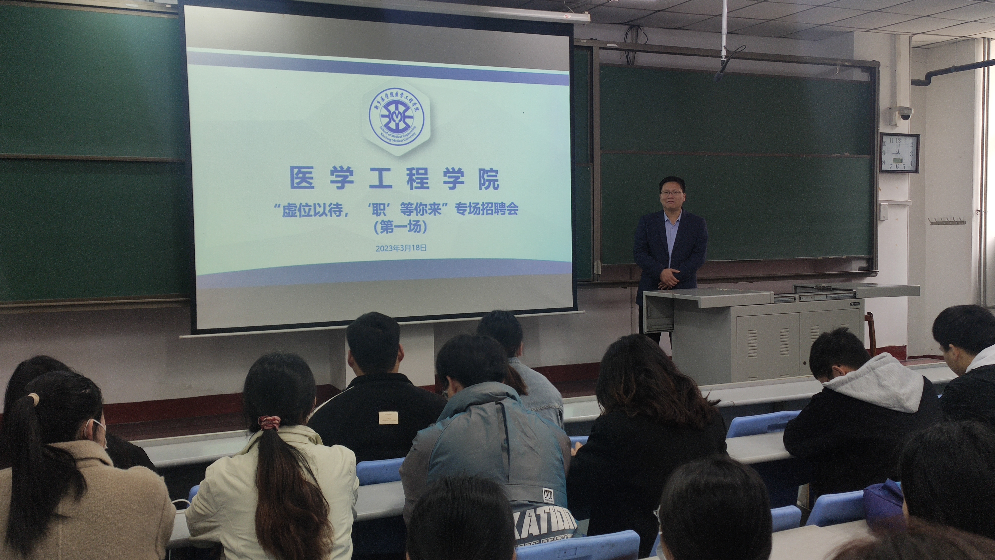为帮助大学生做好职业规划,更好地提前了解未来就业方向和用人单位的相关要求,3月19日,我院于3101教室中成功召开2023年春季学期首场“虚位以待 ‘职’等你来”专场招聘会。本次招聘会由学生事务项目组李佳颖主持,院长于毅、团委书记陈洪涛、辅导员范亚桢、佰泰科技唐经理、上海邑成测试设备有限公司周经理、鑫磊峰医疗有限公司高主管及其同事、德熙生物戴主任和我院2019级、2020级学生参加专场招聘会。