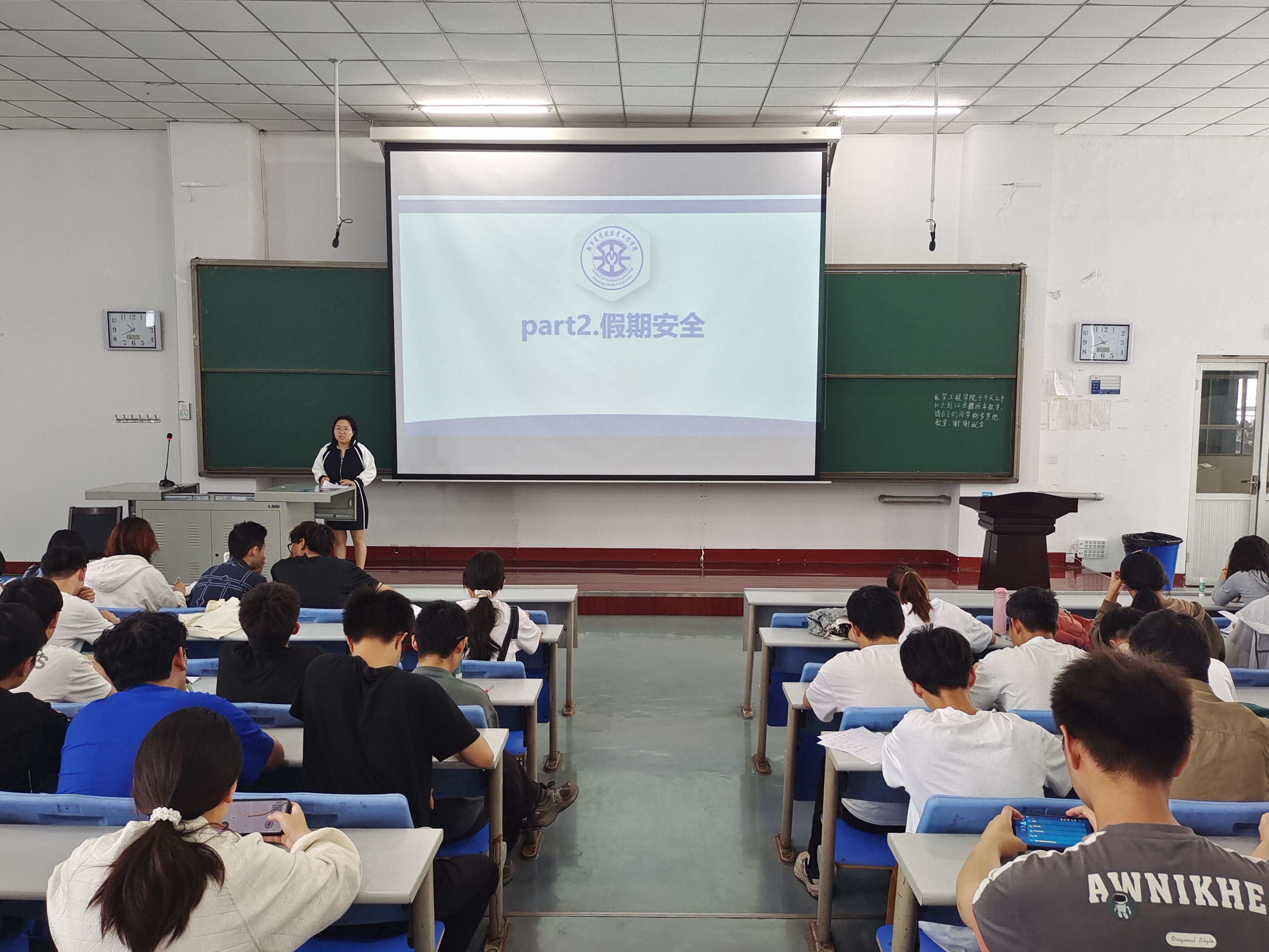 为提高学生的安全意识,平安度过假期生活。65日上午十点,我院于第三教学楼D2大教室开展了假期安全宣讲大会。辅导员范亚桢担任主讲人,团委书记陈洪涛及我院全体学生参加此次宣讲会。