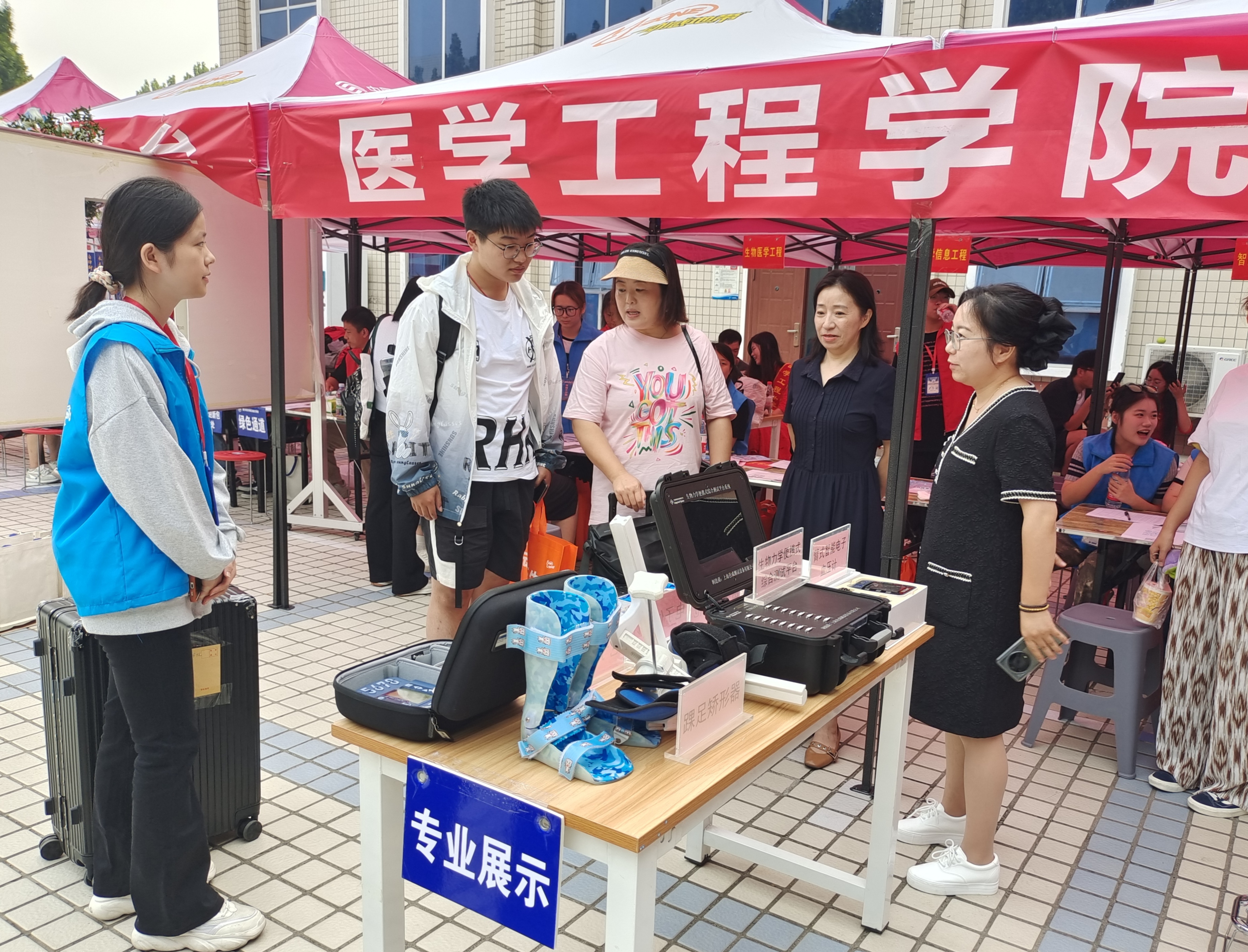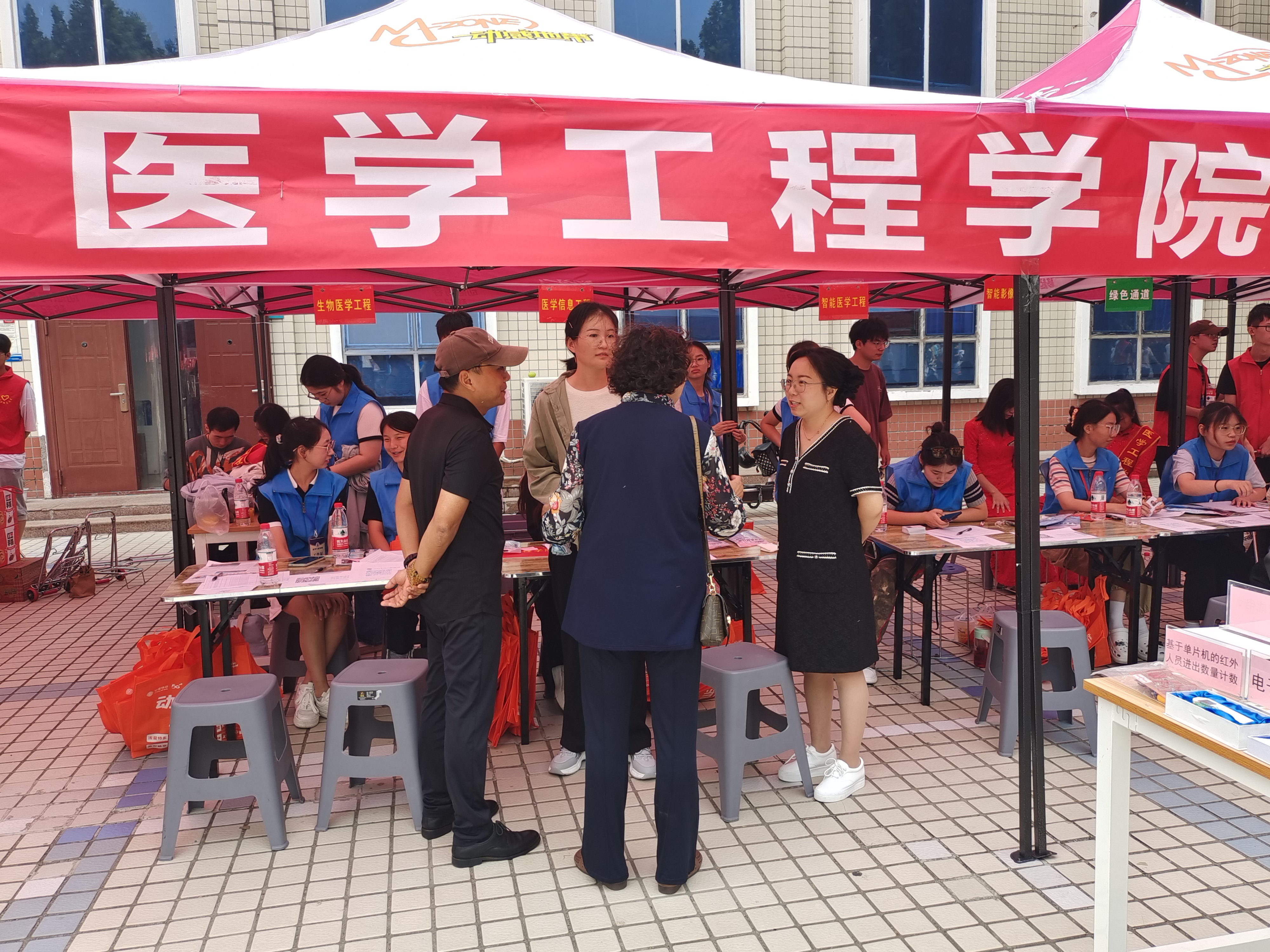 读书十载,踏上新的方舟,每位新同学怀揣着好奇与希望来到心仪的学院,我院贴心地在迎新服务台设立了专业展示台,向同学们讲解电子体温计、臂式智能电子血压计等科研作品,现场洋溢着浓厚的文化气息,向新生传递着专业自豪感。