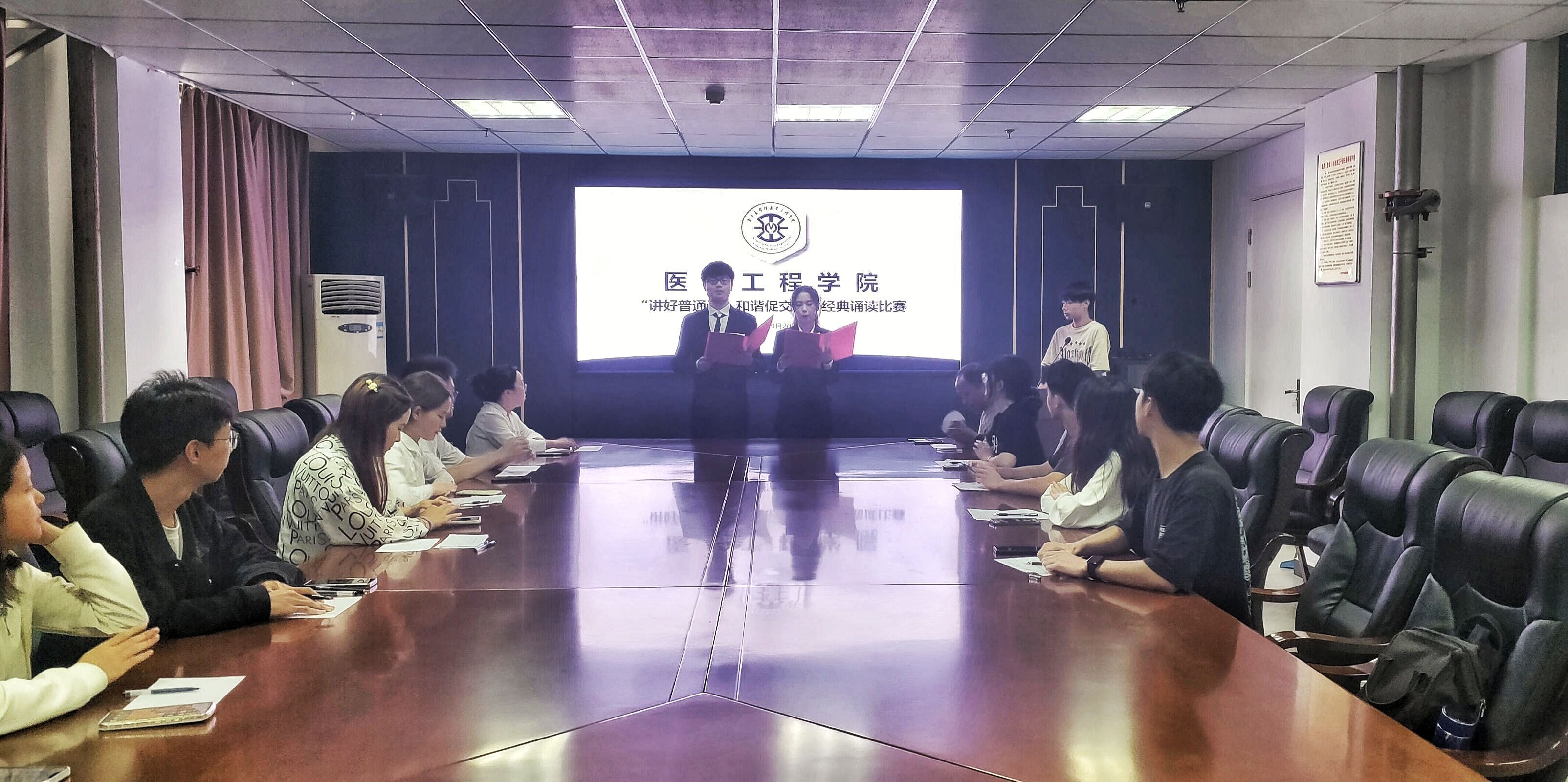 为响应我校开展的第26届全国推广普通话宣传周活动,传承弘扬中华优秀语言文化,营造学习使用普通话的浓厚氛围,9月20日下午,我院于科技楼716会议室举办“讲好普通话,和谐促交流”经典诵读比赛。团委书记陈洪涛、辅导员范亚桢出席此次活动,我院学生积极参加。