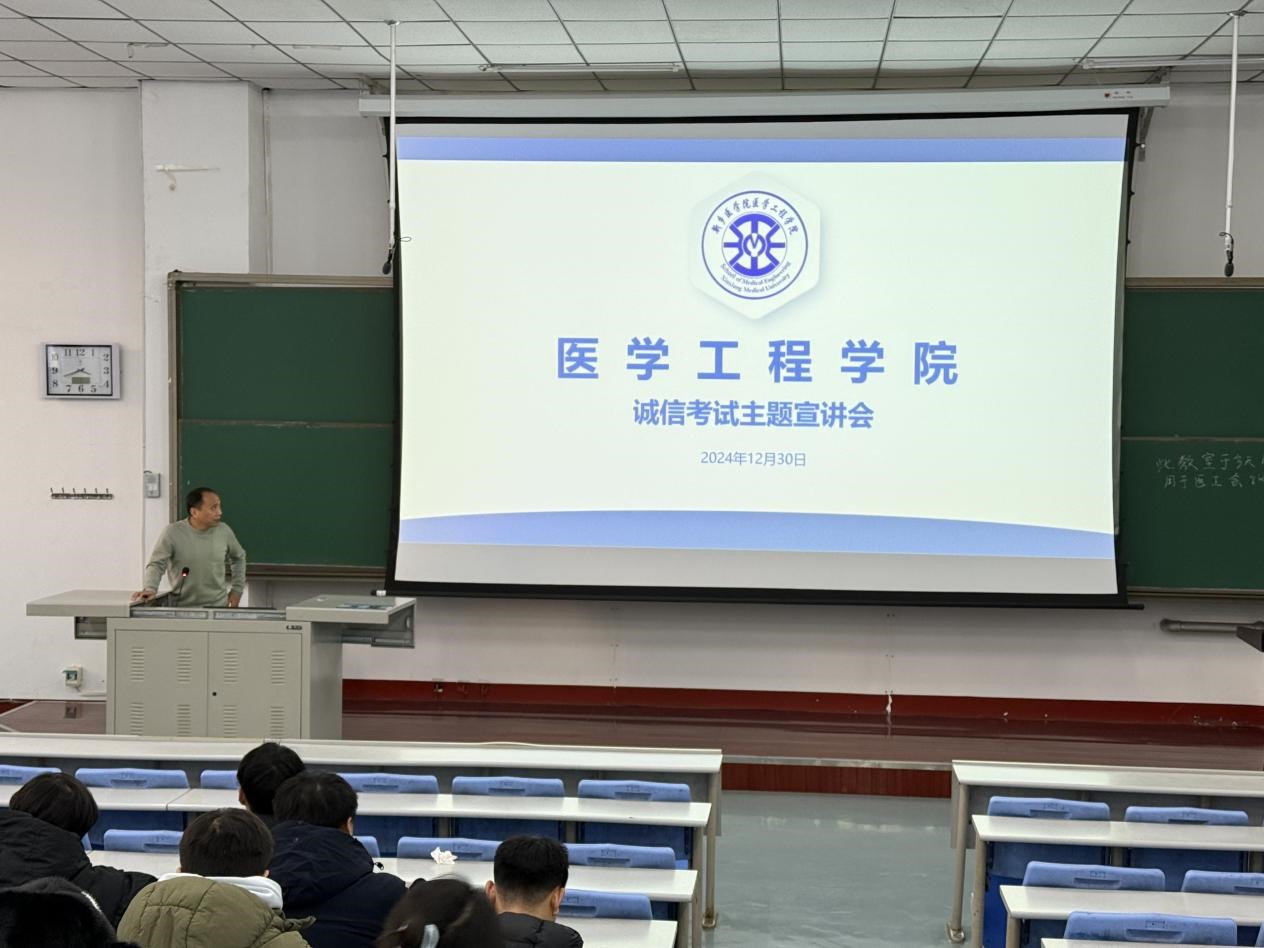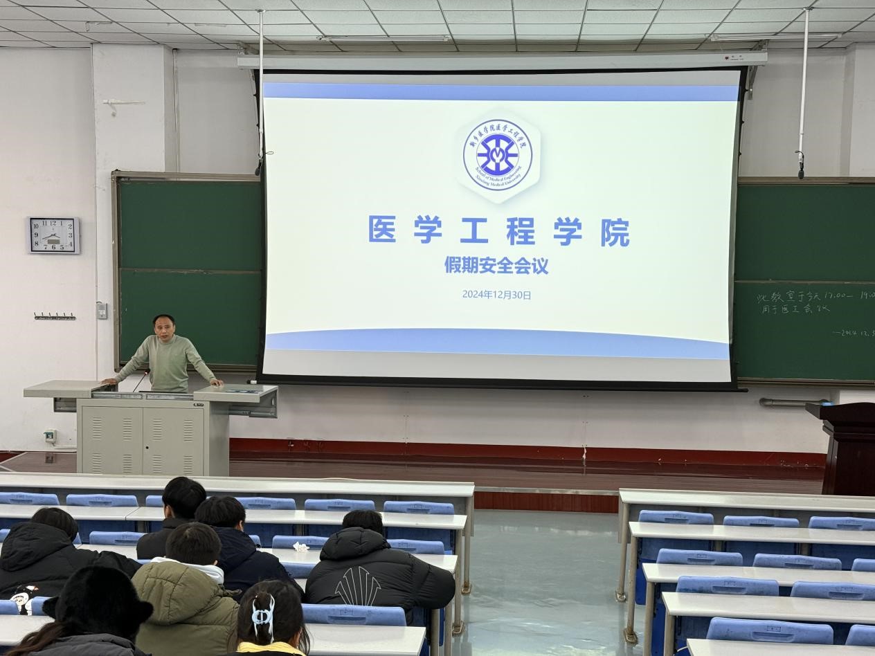 为营造良好的学风及考风,提高学生们的诚信意识与责任担当,保证学生们在假期期间安全。12月30日,医学工程学院在博学楼D2阶梯大教室开展假期安全以及诚信考试主题会议。医学工程学院团委书记陈洪涛出席并主持本次会议,辅导员葛雪晗和22级全体同学到场参加。