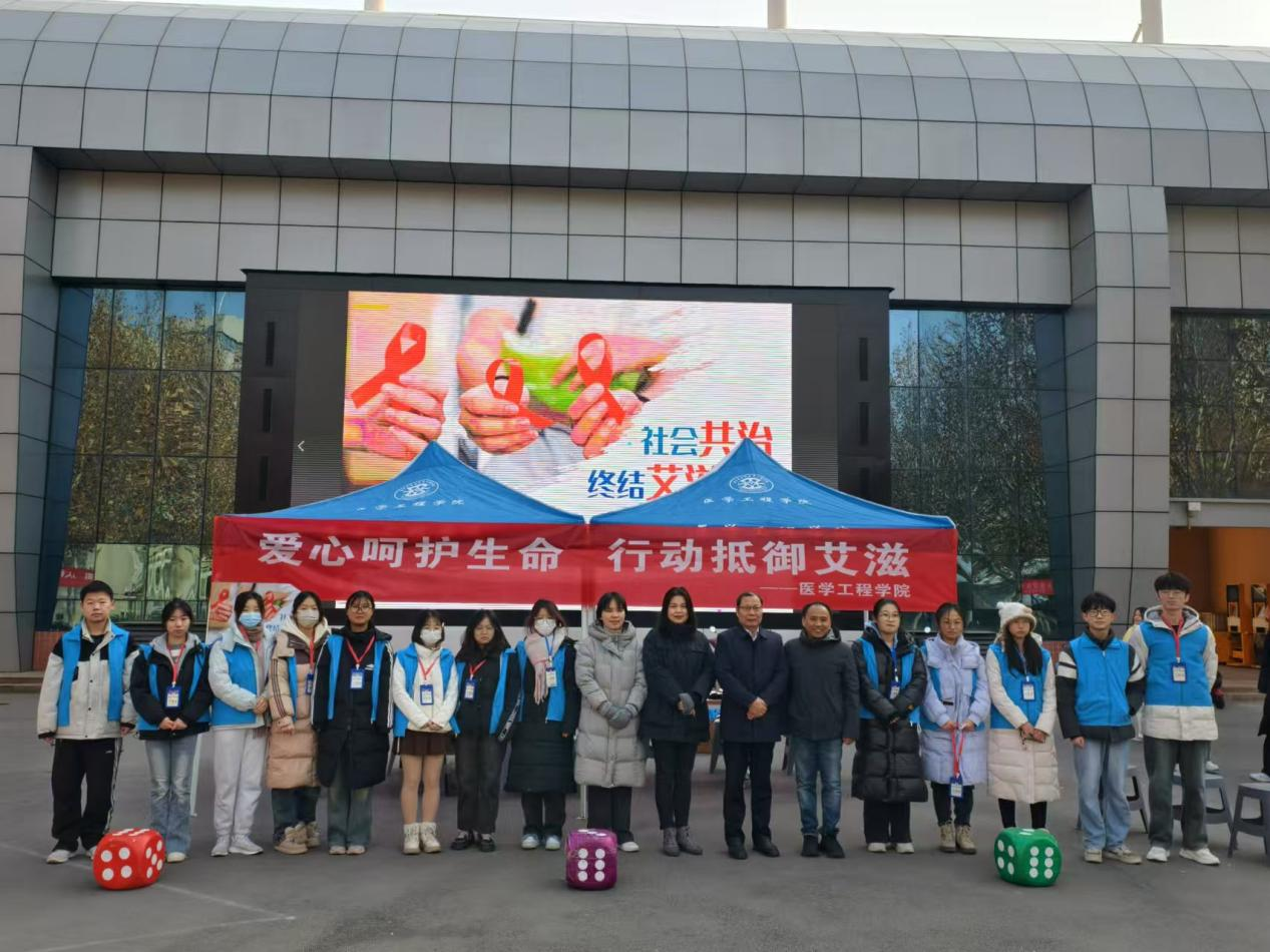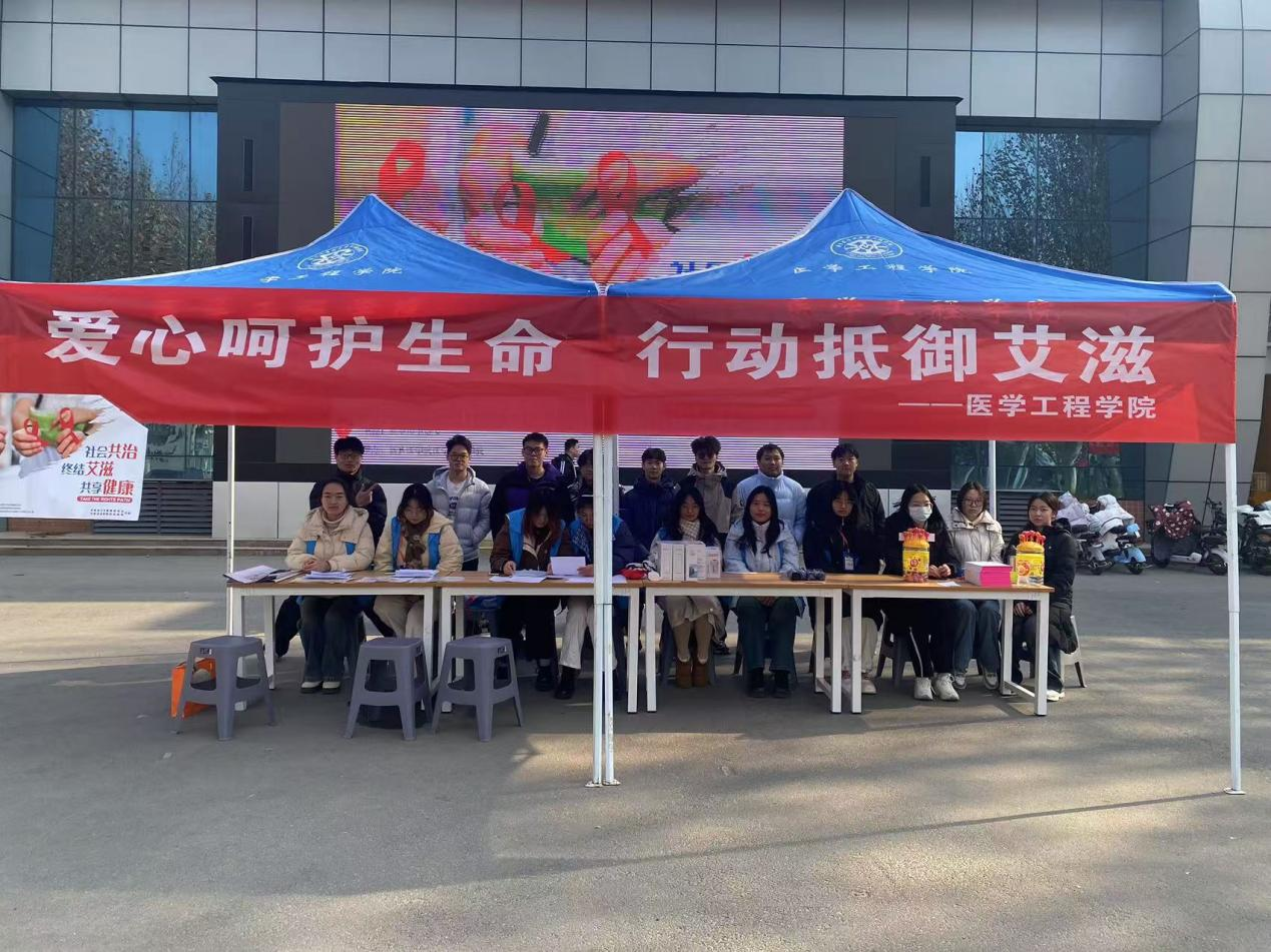 为提高大学生对艾滋病的认识,增强自我防护意识,倡导社会各界共同参与艾滋病防治工作,1月3日上午九点,由新乡市疾控中心主办、医学工程学院承办的以“爱心呵护生命,行动抵御艾滋”为主题的摆台活动在五环广场举行。医学工程学院党委书记王守英、党委副书记张洁、智能影像工程系主任高智贤出席本次活动,团委书记陈洪涛、辅导员葛雪晗和院学生会工作人员到场参加。