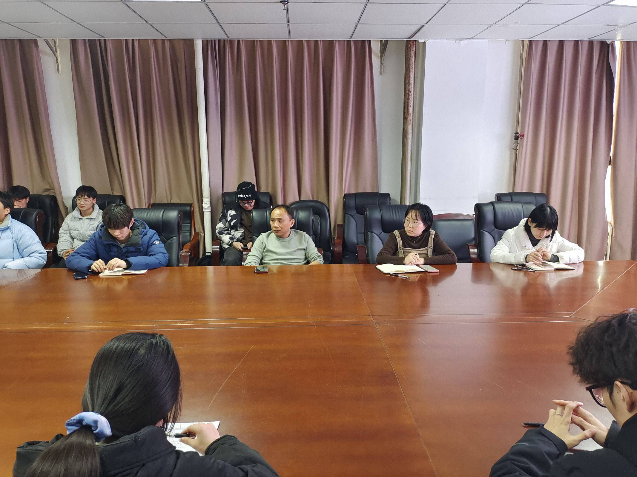 会议伊始,陈洪涛首先对学生干部在学院日常管理与学生活动中所付出的努力表示肯定,并强调了学生干部在学院发展中的重要作用。他希望全体干部能够通过本次培训,进一步提升自身素质,以更加饱满的热情和更加认真的态度投入到学生会工作中,为学院的发展贡献更多力量。随后,辅导员范亚桢围绕学生干部的责任与担当展开培训。她强调,学生干部应始终以服务同学为宗旨,以学院发展为目标,积极主动地开展各项工作。同时,她还分享了学生会工作中的实际案例,引导干部们在实践中不断总结经验、提升能力。辅导员葛雪晗则从学生干部的沟通技巧与团队协作角度进行了详细讲解。葛雪晗指出,良好的沟通能力和团队协作精神是学生会工作顺利开展的关键。她通过案例分析,并与同学们互动交流,分享了有效沟通的方法和团队协作的技巧,帮助学生干部更好地理解如何在工作中与同学、老师以及团队成员进行高效沟通与协作。