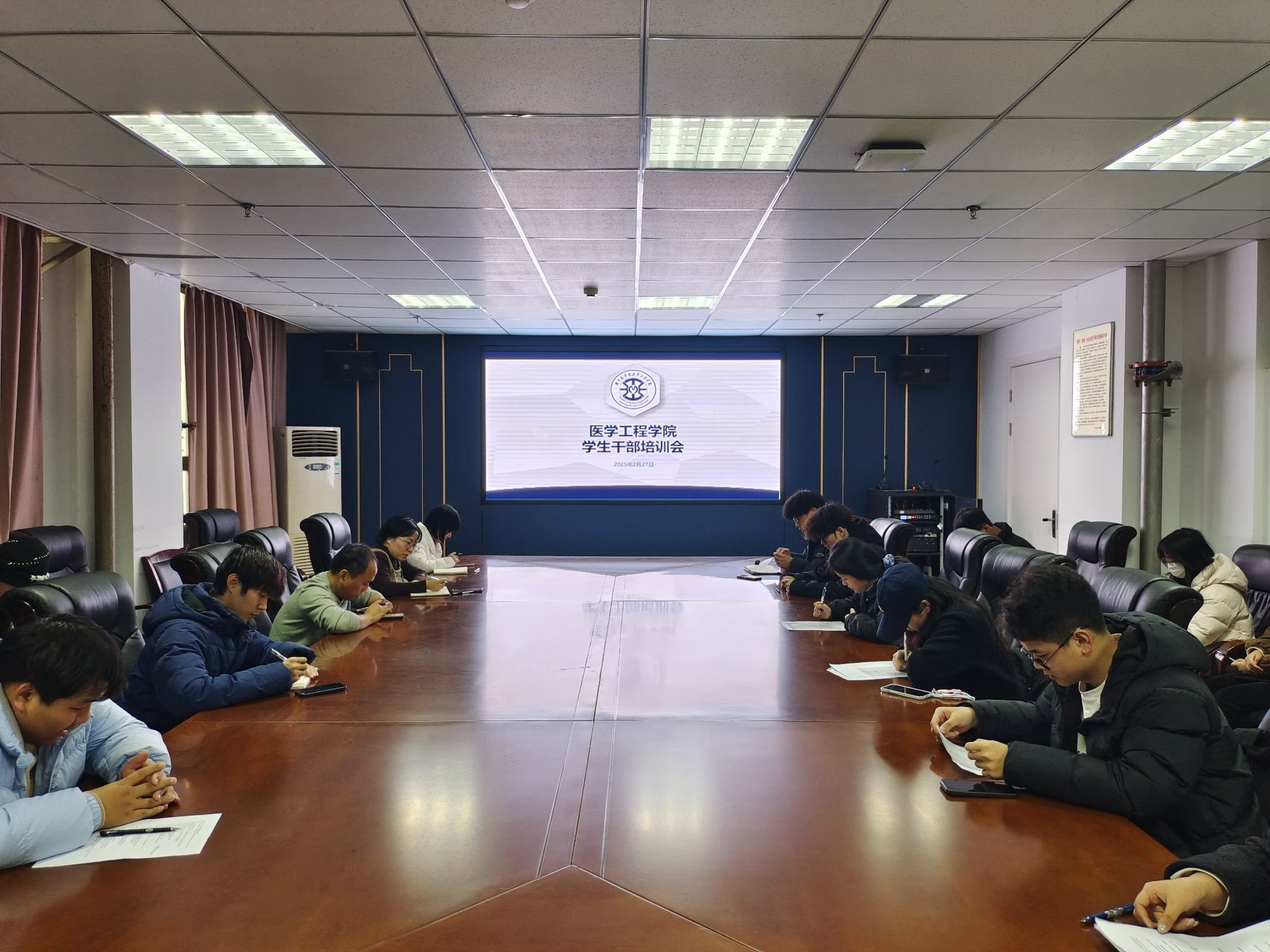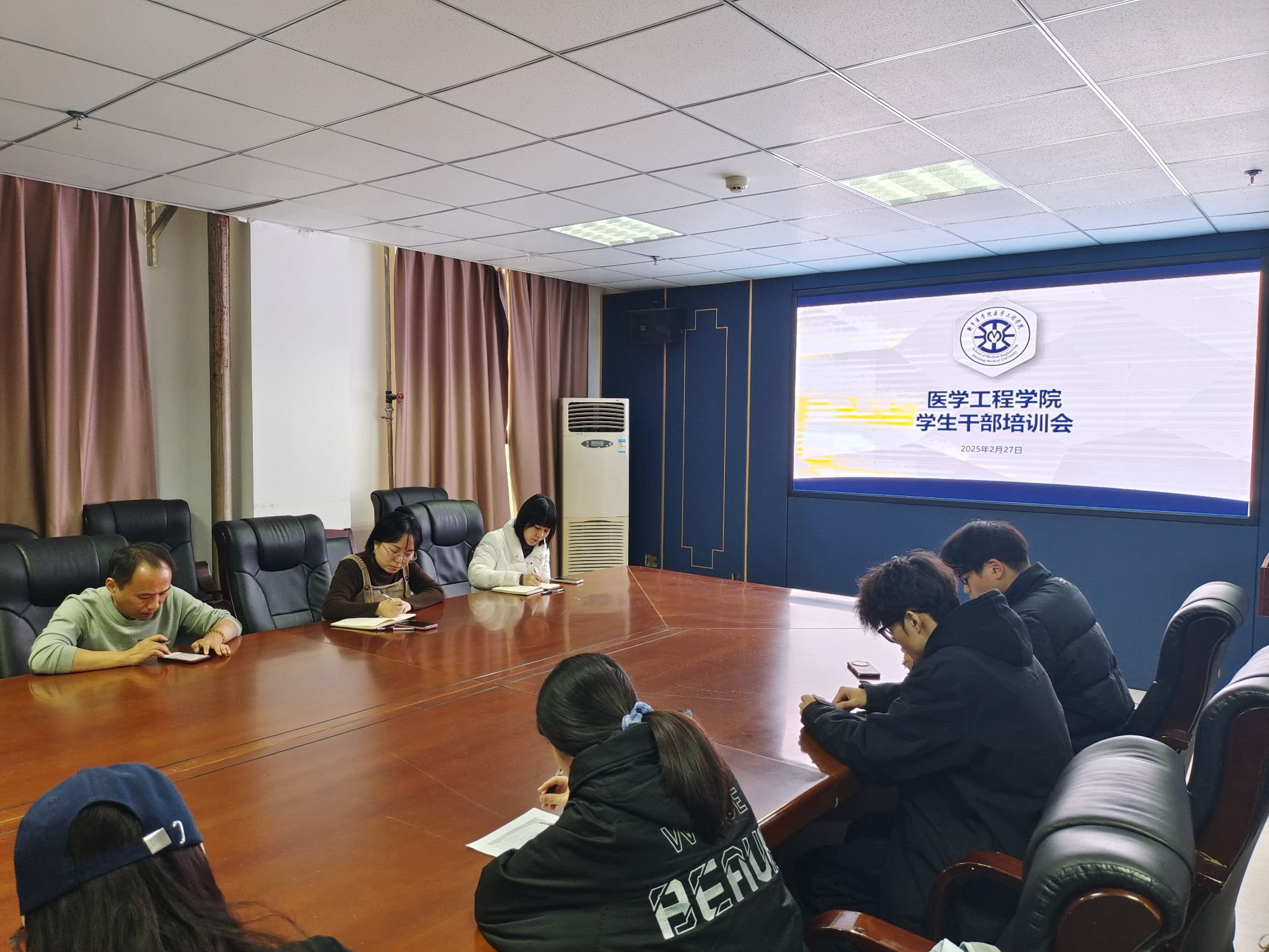 为提升学生干部的综合素质与工作能力,进一步推动学院学生工作的高质量发展,2025年2月27日,医学工程学院在科技楼716会议室成功举办了学生干部培训会。团委书记陈洪涛、辅导员范亚桢、葛雪晗以及全体学生干部出席本次会议。