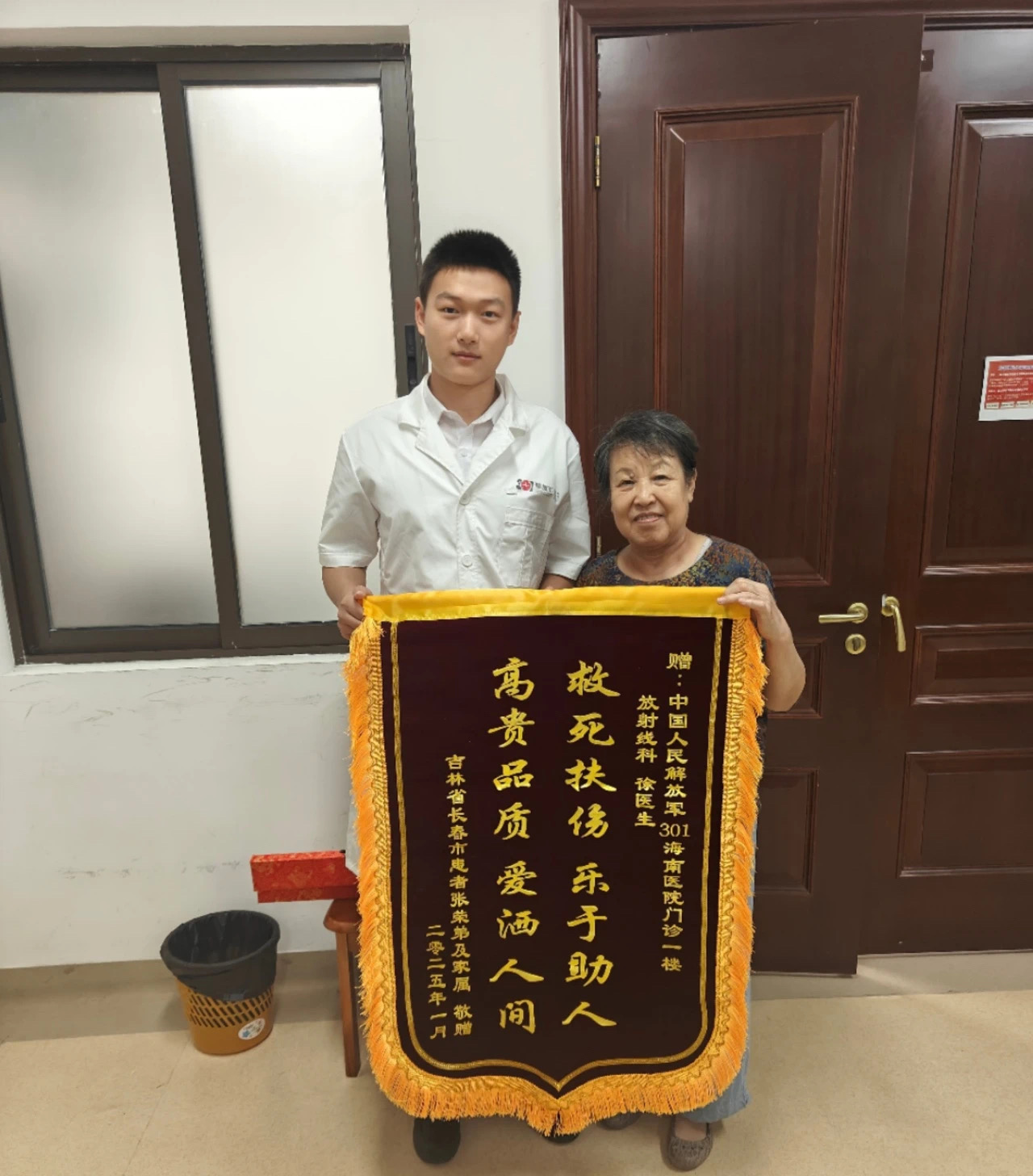 时隔月余,当大家都已淡忘此事时,一面绣着“救死扶伤乐于助人 高贵品质爱洒人间”的锦旗突然被送到了放射科。原来,出院后的老人始终对徐宝杰的帮助念念不忘,特意定制锦旗以表谢意。收到这份意外惊喜,徐宝杰同学表示:“这面锦旗既是对我工作的肯定,更是一份鞭策。救死扶伤是医护人员的天职,能得到患者的认可,我深感荣光。”