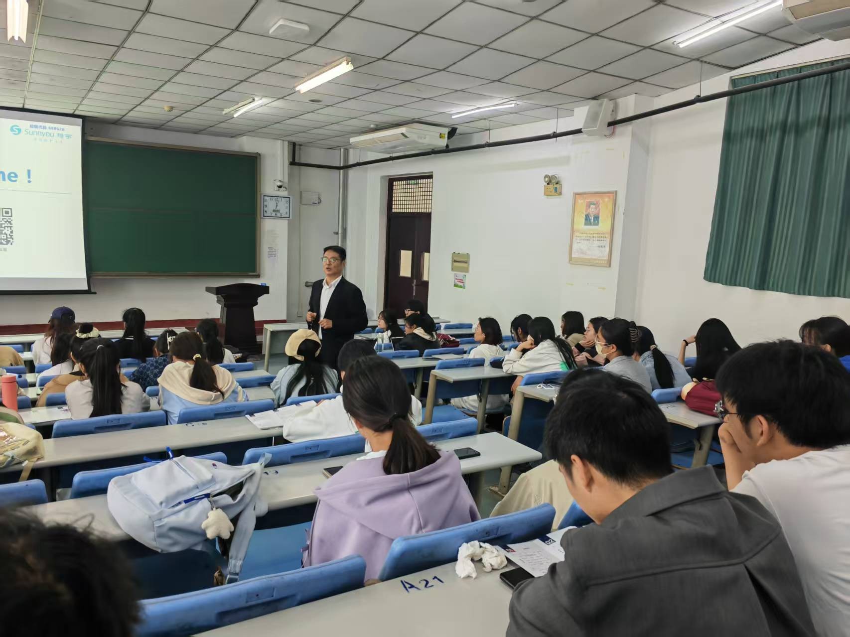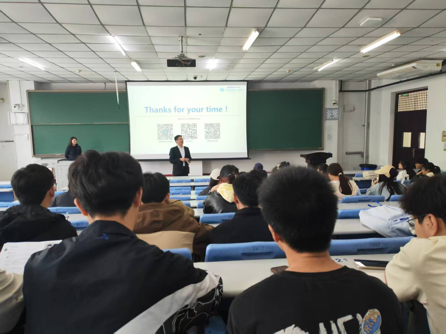 在互动交流环节,同学们热情高涨、积极提问。他们就自己关心的工作环境、发展前景、培训体系、晋升机制等问题向梁总监和曹经理寻求解答。梁总监和曹经理一一耐心回应,现场气氛活跃而融洽。通过面对面的交流,同学们不仅消除了心中的疑惑,更对未来的职场生活充满了期待。
