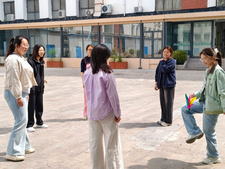 活动现场气氛热烈,同学们热情高涨。在羽毛球颠球接力赛中,选手们专注颠球,力求动作精准;“袋鼠跳” 环节,大家像袋鼠般跳跃前行,欢笑声不断;多人接龙踢毽子比赛、“百发百中” 投沙包、蒙眼击掌接力以及夹乒乓球等项目也趣味十足,各参赛队伍齐心协力,为荣誉而战。