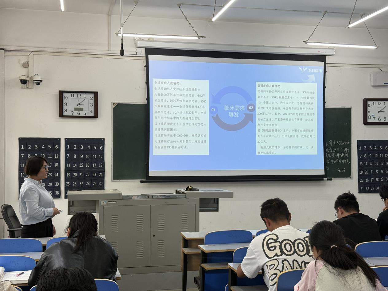 会上,郑州麦克斯医疗公司宣讲负责人谢灵云以详实数据与生动案例,全方位解析企业发展脉络。她从公司成立至今的成长轨迹讲起,深入阐释"创新驱动、服务民生"的企业文化,系统介绍覆盖医疗设备研发、生产及销售的全产业链业务布局。在人才培养板块,谢灵云结合员工职业发展案例,展现清晰的晋升路径,同时围绕薪资结构、年度提成等福利政策展开细致说明。台下的学生们认真聆听,若有所思。这场宣讲让他们对行业发展与个人职业前景有了更深入的认知,也为未来的职业规划提供了新的思路与方向。