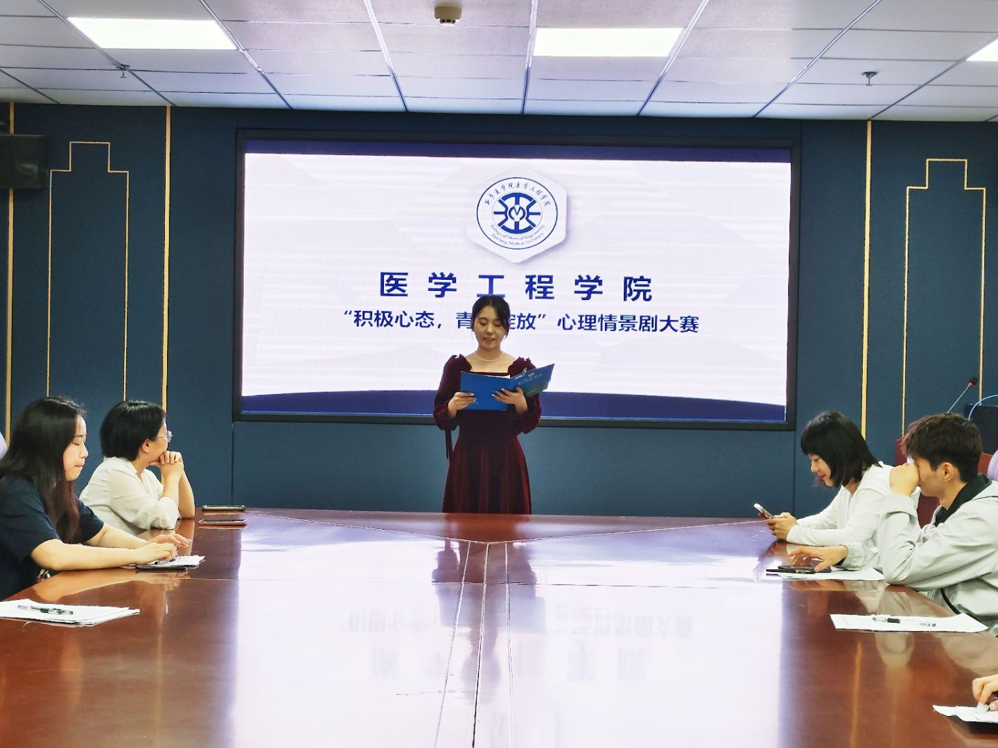 为进一步推进学生心理健康教育工作,培育积极向上的健康心态与健全人格,医学工程学院于5月15日下午在科技楼716成功举办2025年“积极心态,青春绽放”心理情景剧大赛。本次活动由陈聪颖主持,辅导员范亚桢、葛雪晗出席本次活动,医学工程学院主席团及学生会宣传部成员作为评委。